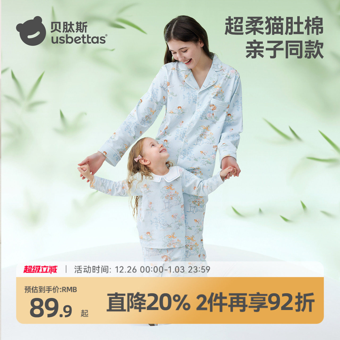 贝肽斯儿童睡衣男童女童2025新款春秋季纯棉亲子家居服套装猫肚棉