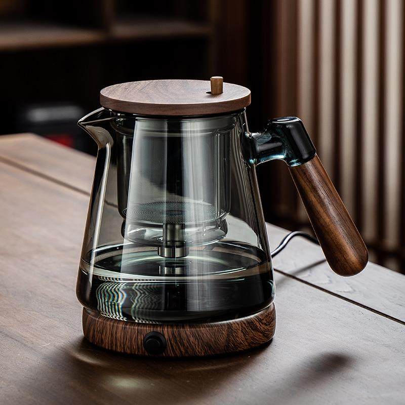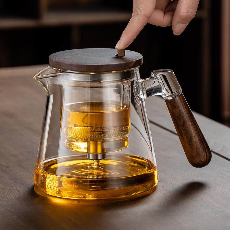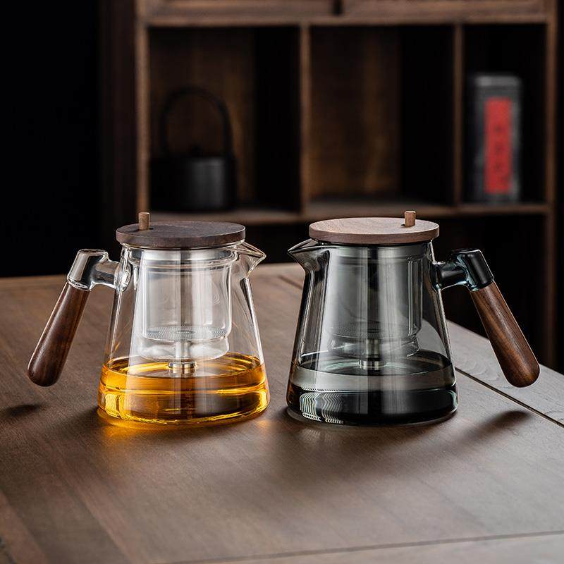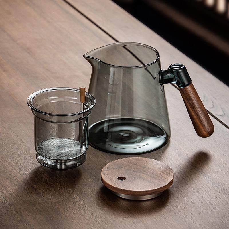 A5L飘逸杯泡茶壶全玻璃内胆侧把胡桃木茶水分离过滤泡茶杯家用冲