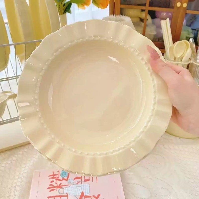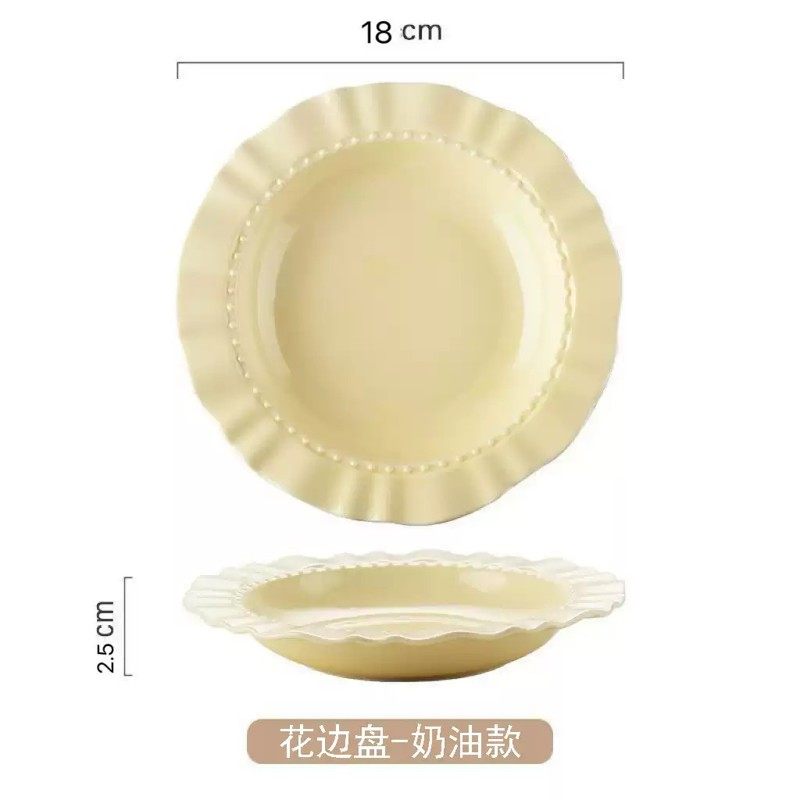 奶油花边盘子家用早餐水果盘沙拉盘菜盘仿陶瓷奶油风点心草帽盘