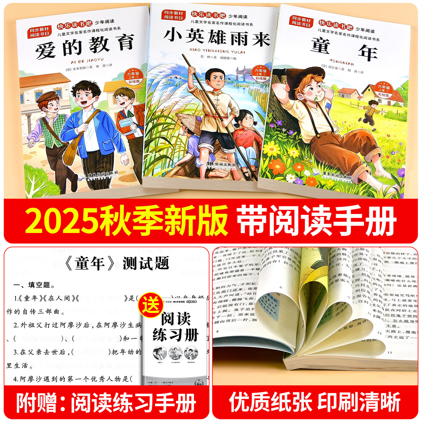 全套3册童年爱的教育和小英雄雨来六年级上册必读正版的课外书高尔基原著快乐读书吧六上阅读书籍老师推荐6上课外书目童话故事新版