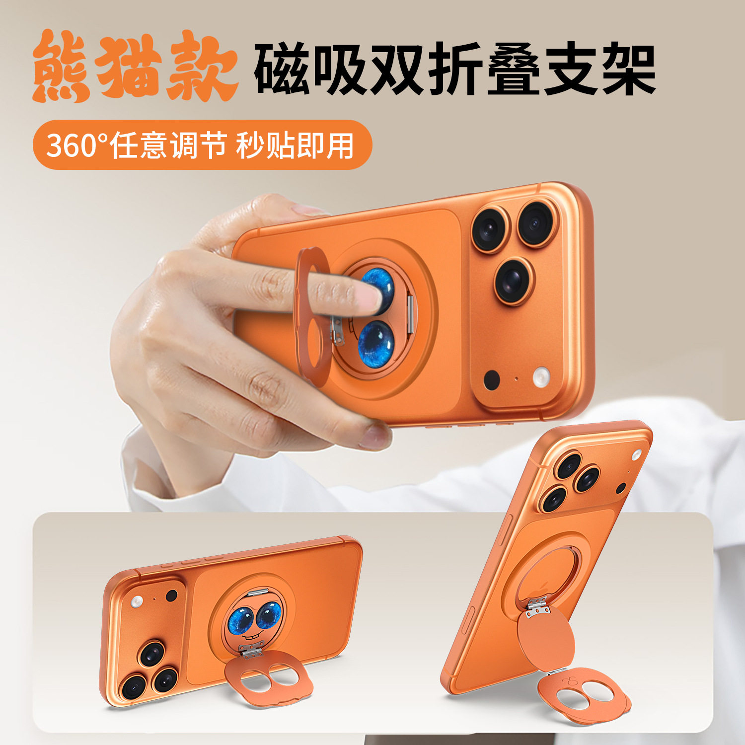 熊猫双环磁吸手机支架2025新款手机指环扣适用于苹果16/17平板ipad专用MagSafe背贴便携车载桌面直播拍摄神器