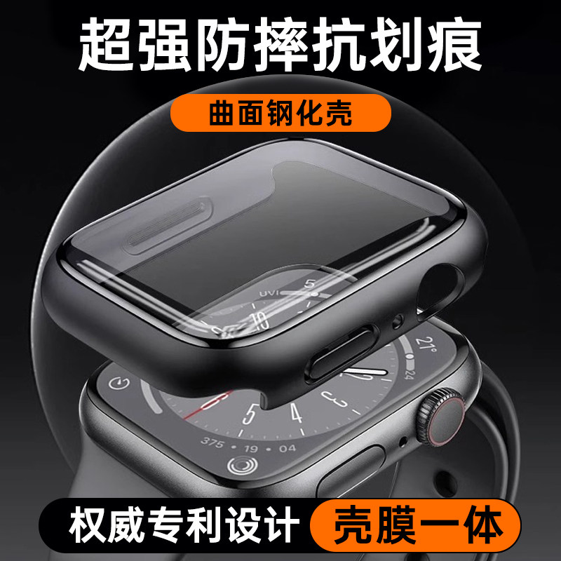 适用appelwatchS10苹果手表S9新款升级曲面保护壳S8防摔iwatch防磕碰钢化膜7高级防护6智能时尚配件41/45mm男