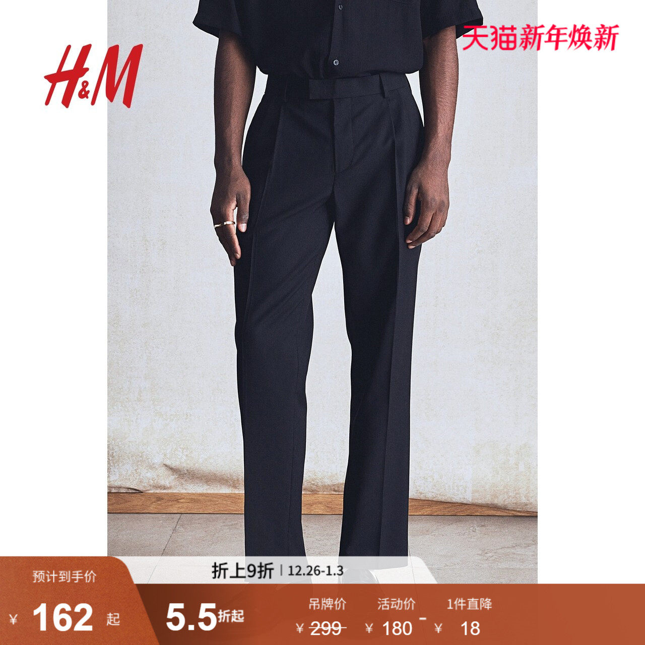 HM休闲裤2025年秋季新款休闲版型亚麻混纺精裁长裤1259381