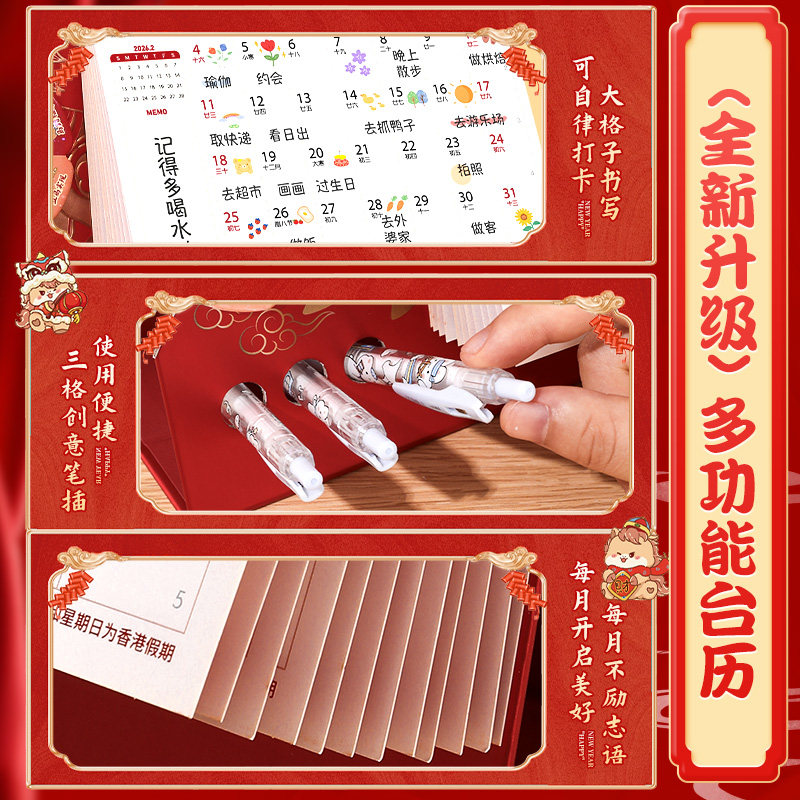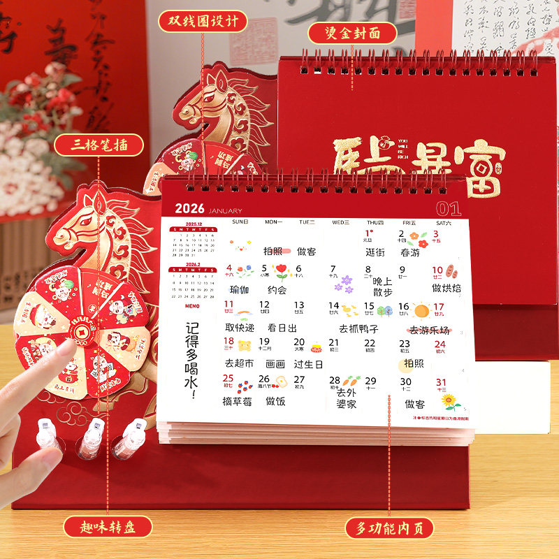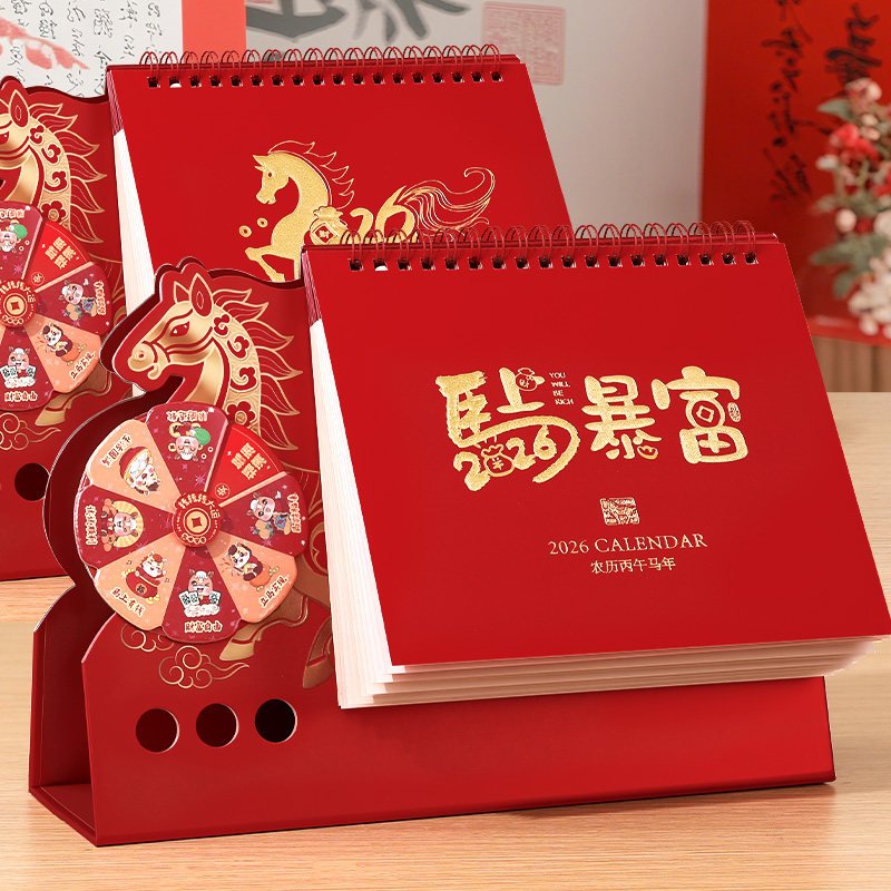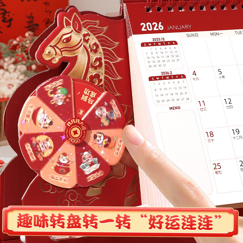 2026年十三张创意异形工艺台历商务办公桌面桌面摆件卡通烫金封面打卡记录翻页月历公司定制可印logo马年日历