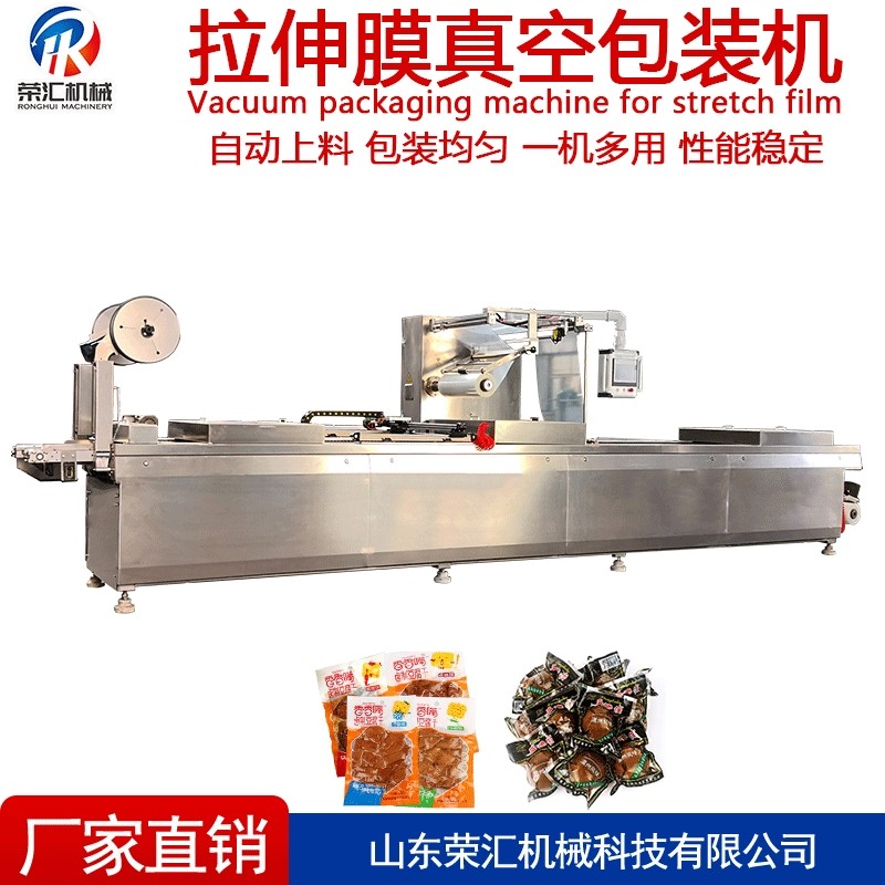 荣汇厂家全自动拉伸膜真空包装机 商用阿胶海参连续式真空包装机
