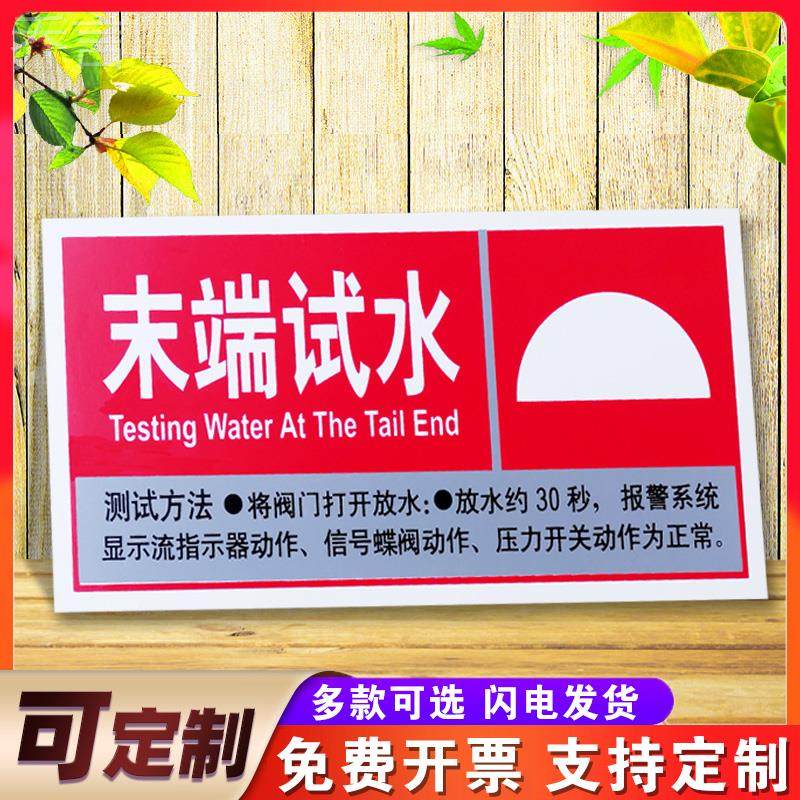 排烟口送风口水流指示器标识贴验厂车间稳压泵末端试水报警阀组测试方法指示牌消防设备安全提示牌贴纸