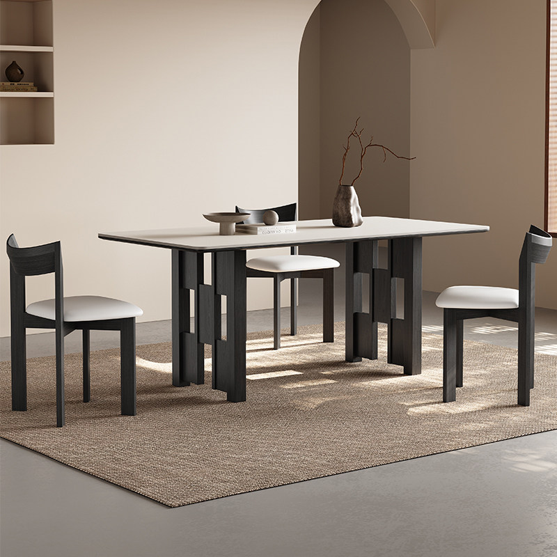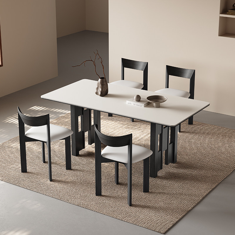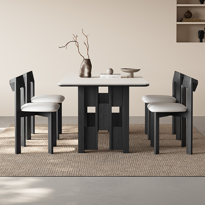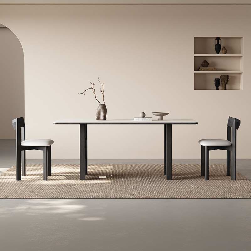 长方形实木餐桌复古风小户型2025新款黑色极简哑光全托岩板餐桌