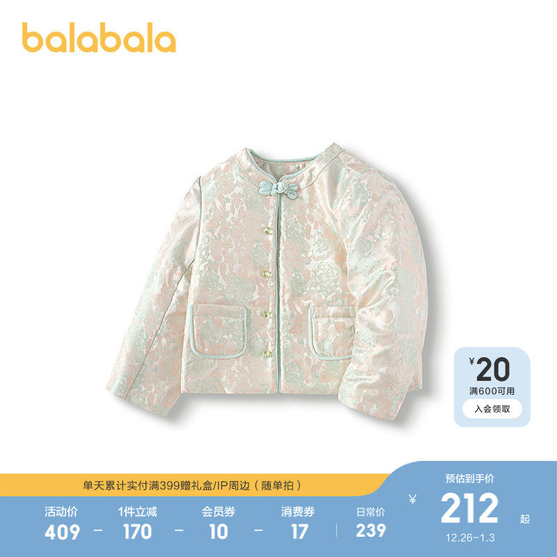 巴拉巴拉童装女童棉服新中式国风提花外套儿童春装棉衣洋气撞色