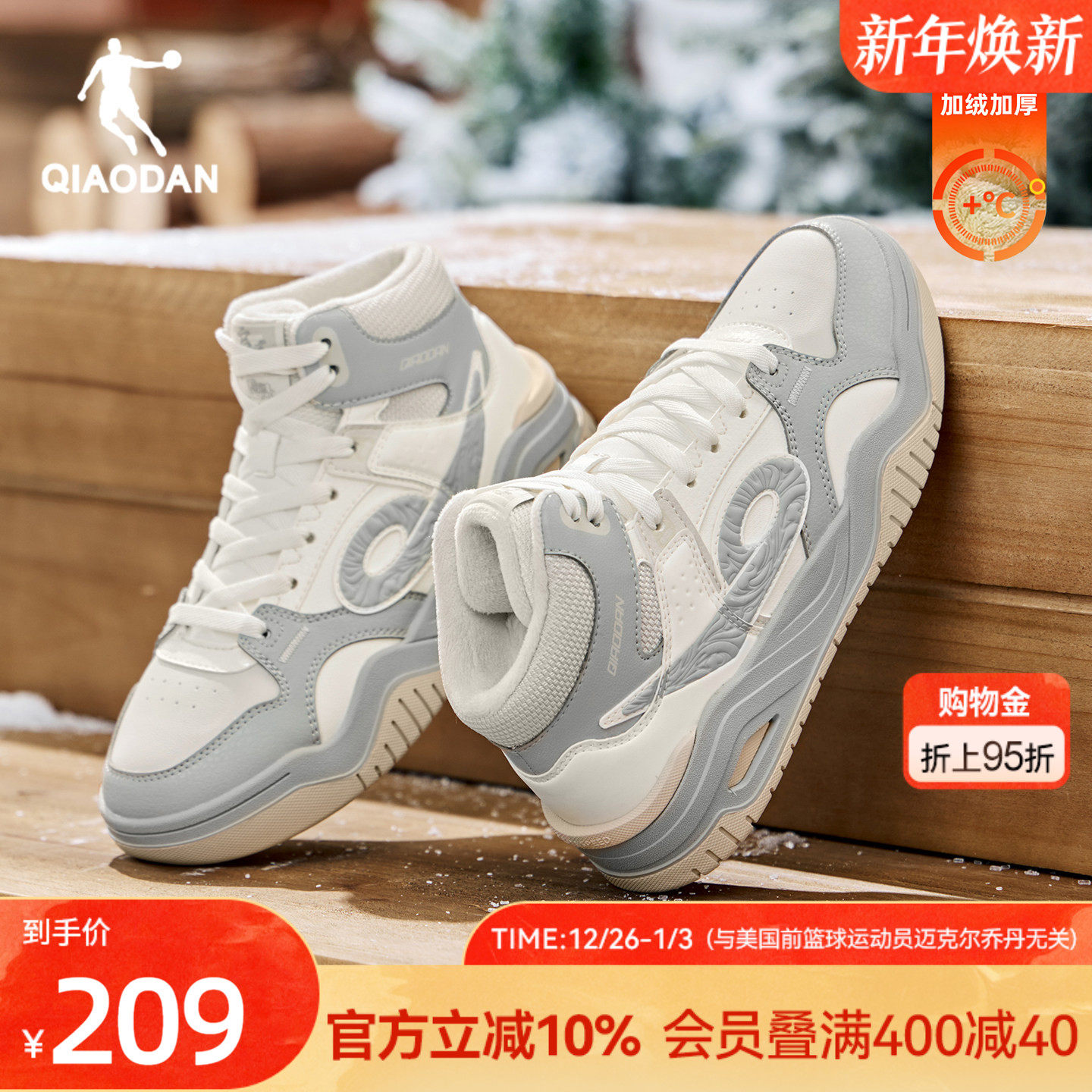 乔丹女款运动棉鞋皮面加绒保暖板鞋女启承高帮2025年新款休闲鞋