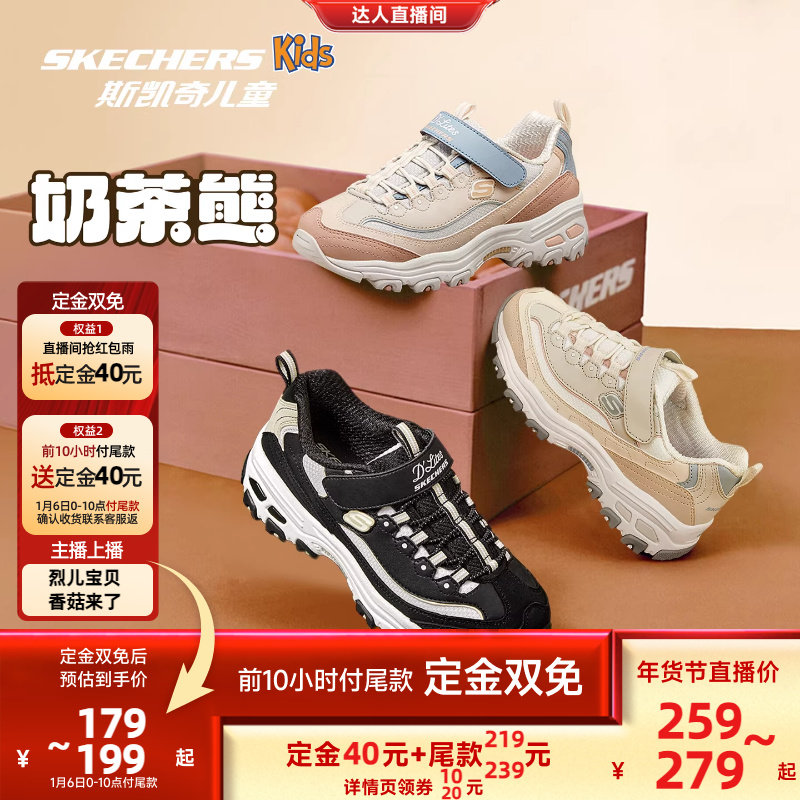 【主播推荐】斯凯奇儿童奶茶熊秋冬休闲运动鞋女童熊猫老爹鞋