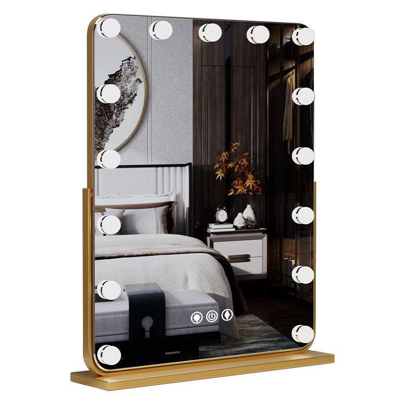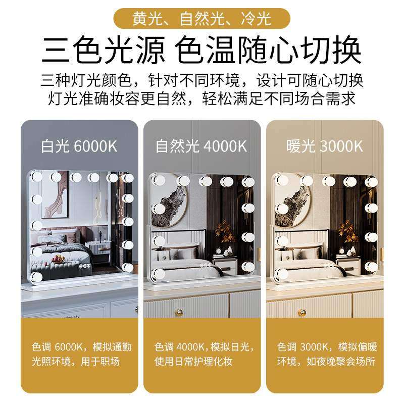 跨境化妆镜子带灯泡台式桌面led方形大号充电智能触屏补光梳妆镜