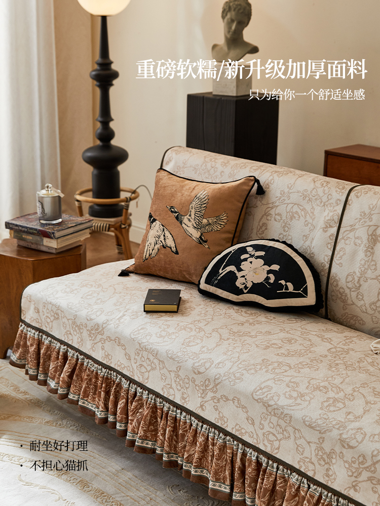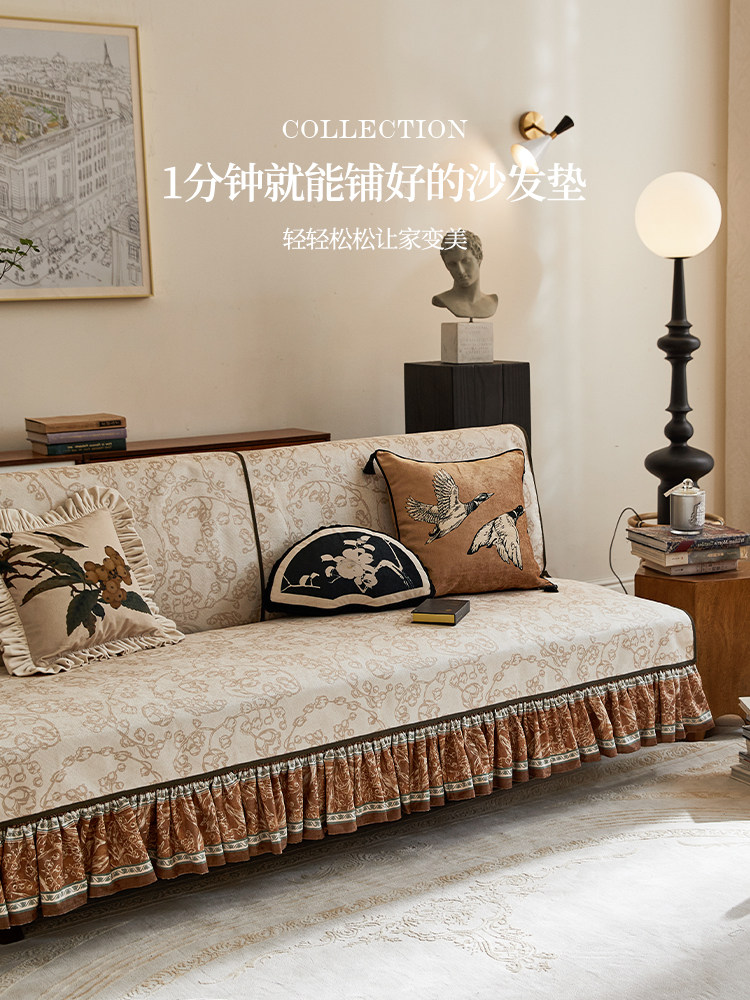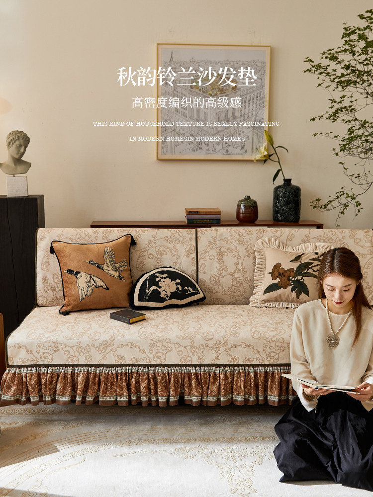 【孤品35折】蜡笔派秋韵铃兰沙发垫现代轻奢四季防滑防猫抓盖布P