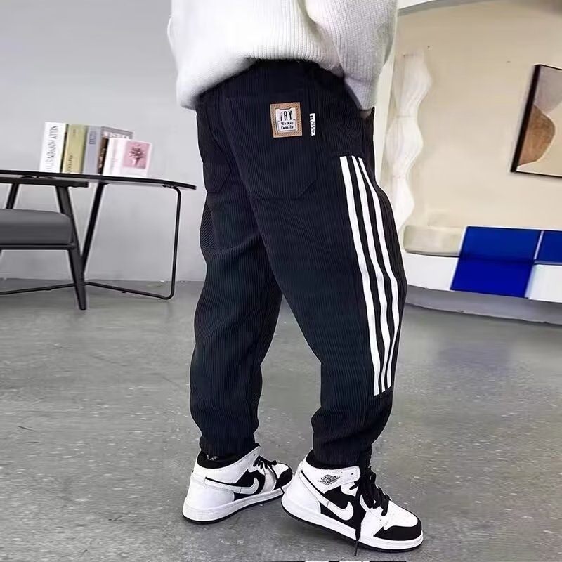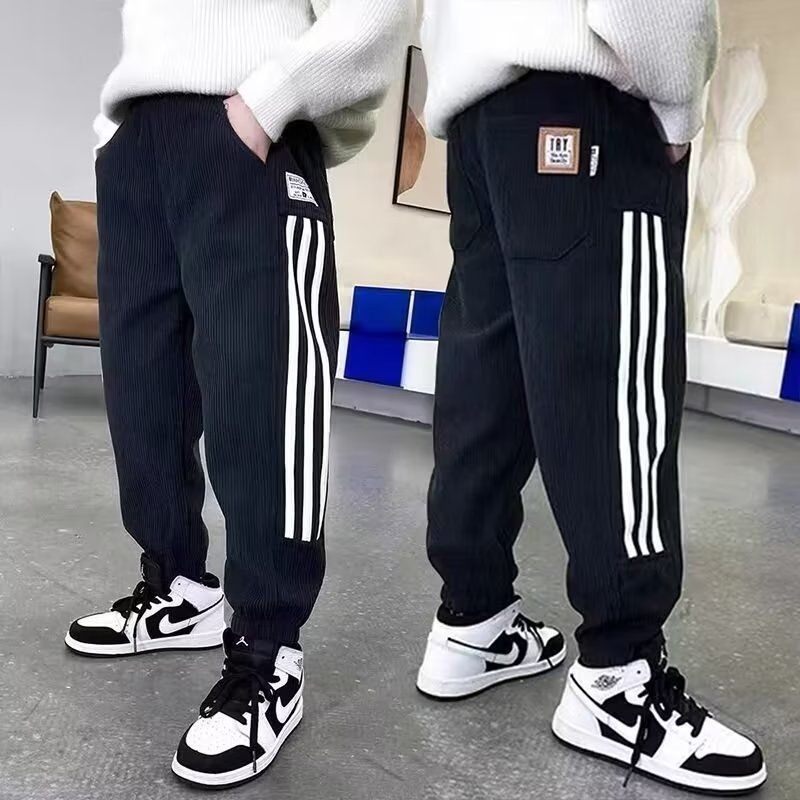 男童加绒一体绒灯芯绒裤子秋冬新款男孩休闲长裤冬季中大童运动裤