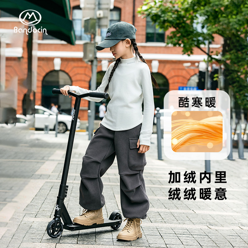 半度闲女童运动加绒裤洋气秋冬中大童25新款儿童冬季加厚工装长裤