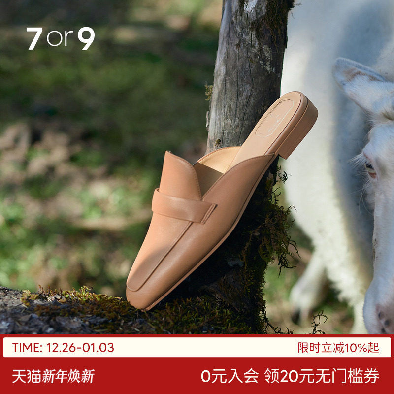 7or9南瓜慕斯真皮穆勒鞋包头凉鞋方头单鞋不累脚小床垫