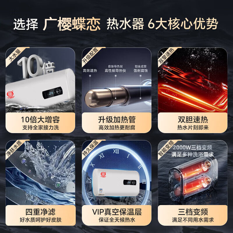广樱热水器电家用扁桶圆桶小型储水式卫生间洗澡速热出水超薄双胆