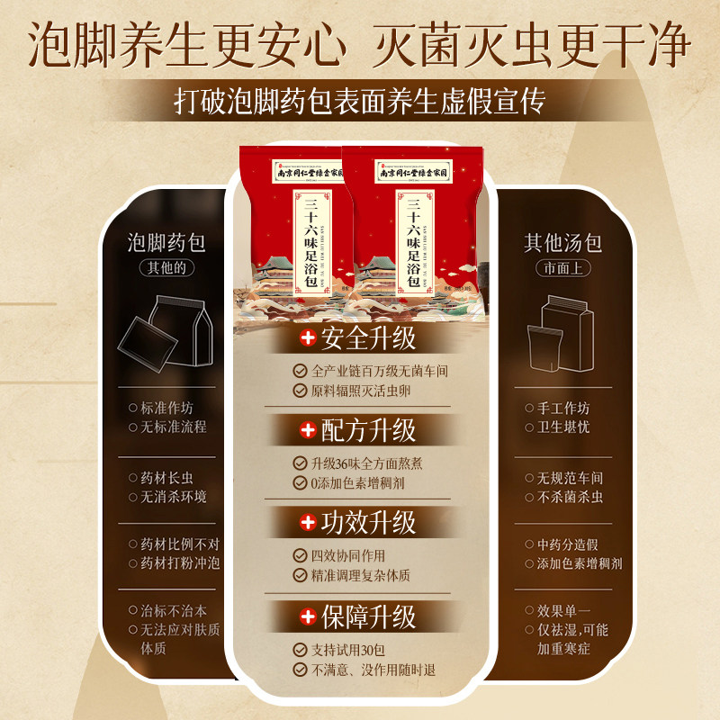 南京同仁堂泡脚药包驱寒祛湿排毒助睡眠男女士艾叶花椒生姜泡脚包