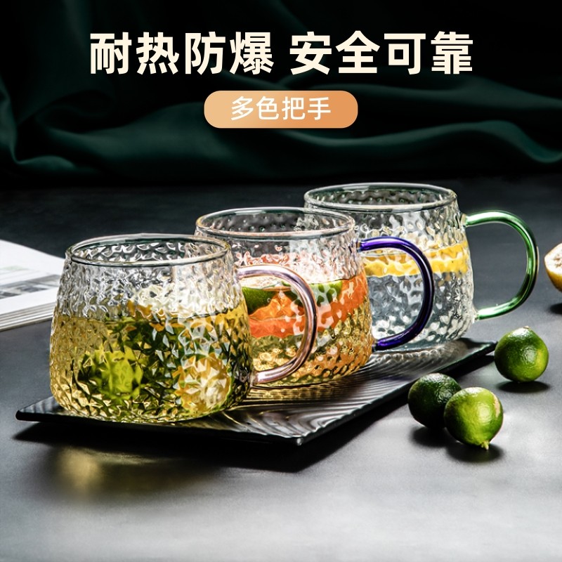 家用高硼硅把杯喝水杯早餐茶杯锤纹水杯夏季杯子玻璃客厅微波炉