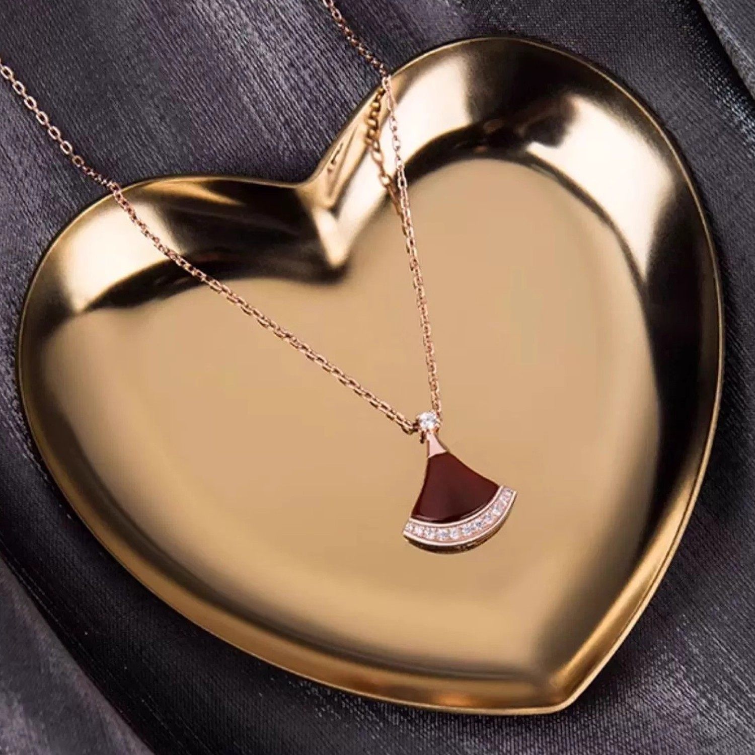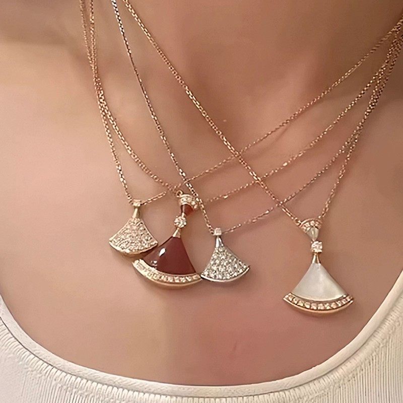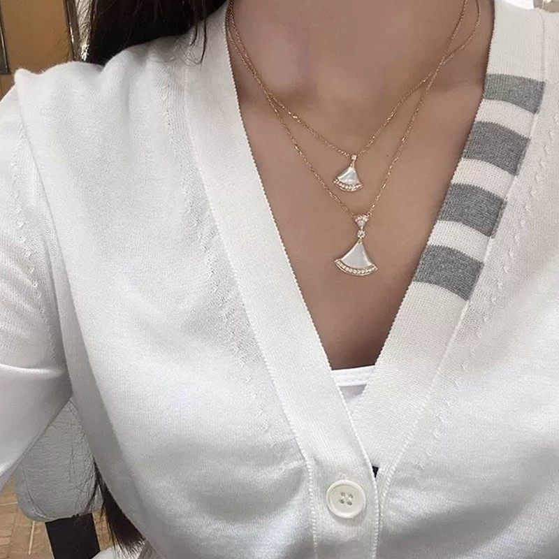 小裙子项链扇形吊坠女满钻纯银小众白贝母锁骨链玫瑰金新款珠宝