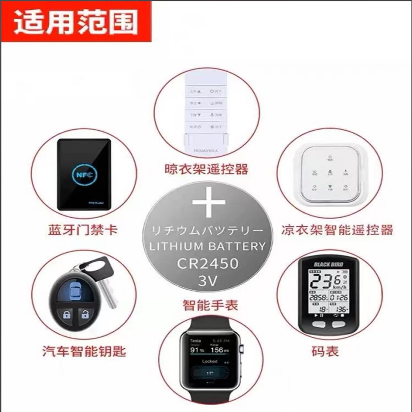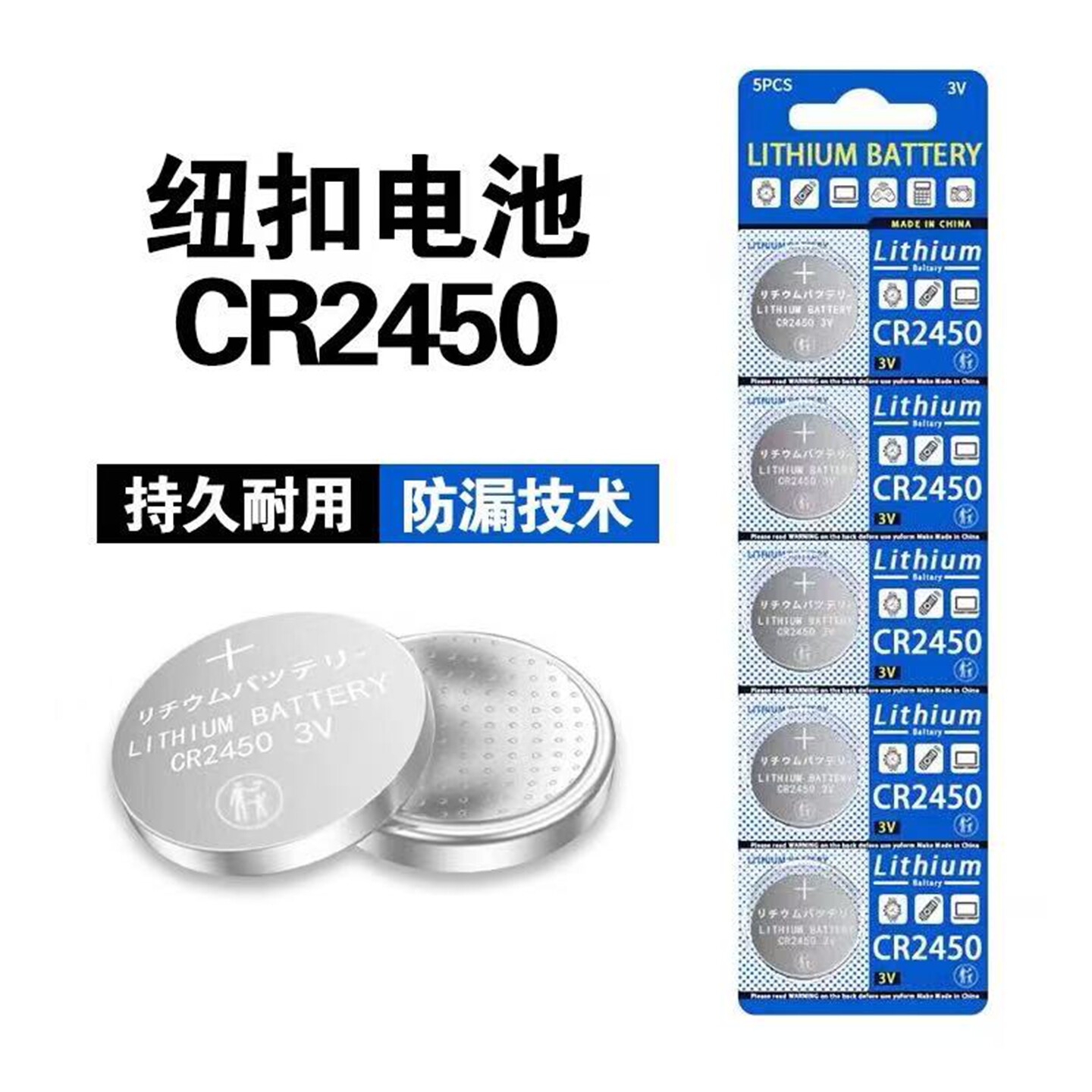 CR2450纽扣电池汽车钥匙遥控器升降晾衣架热水器浴霸电池3V锂电池