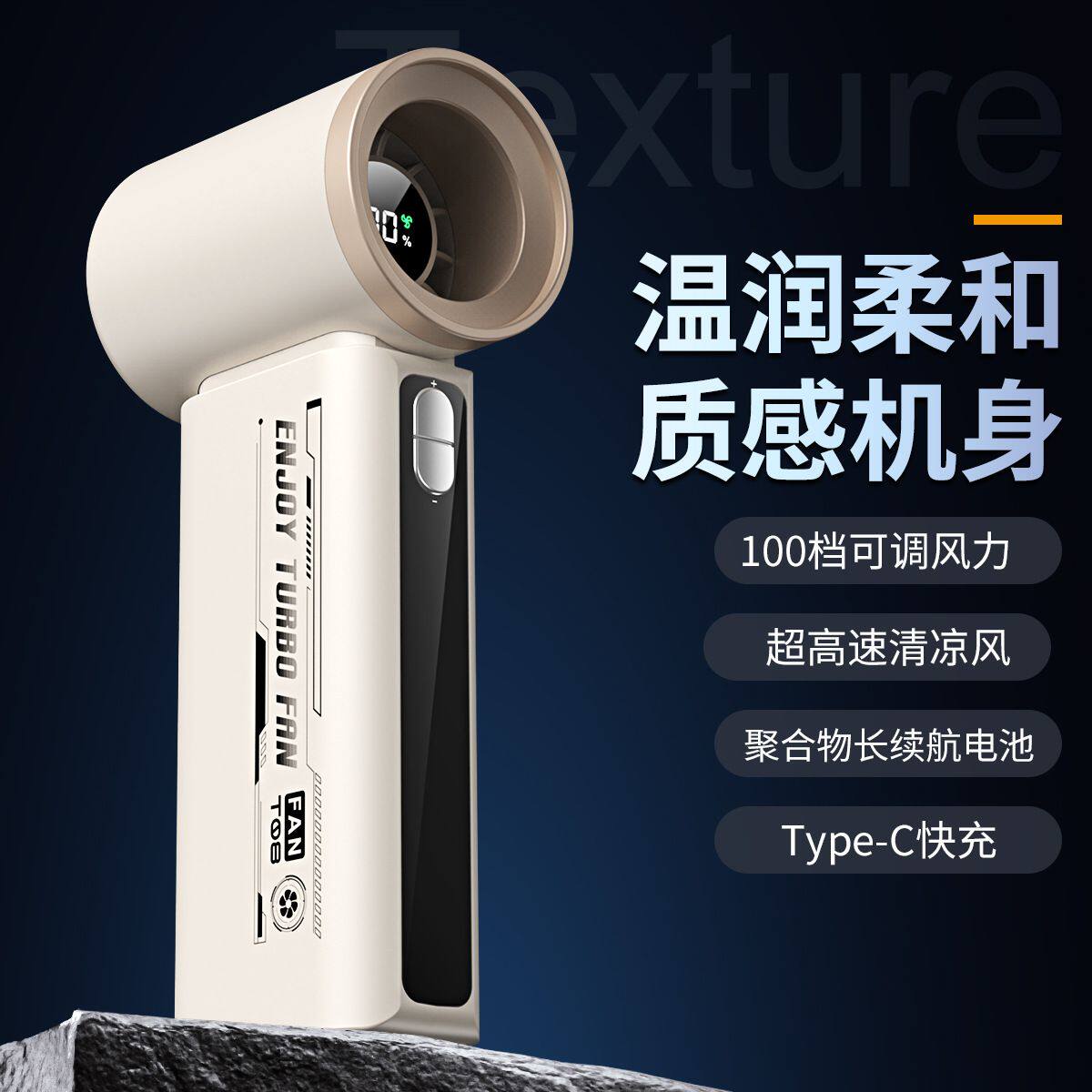 新款T08手持高速小风扇 usb充电数显迷你大风力暴力涡轮手持风扇