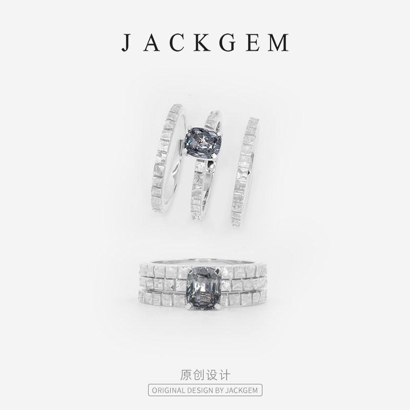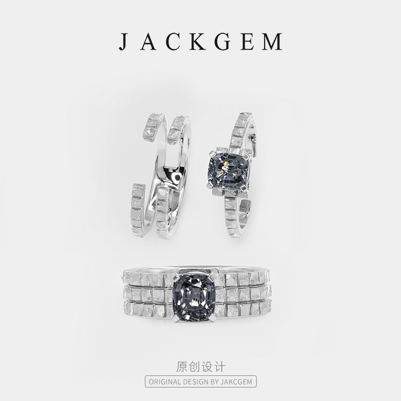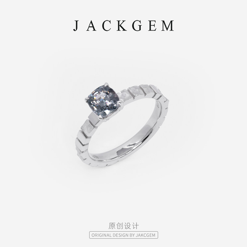 【原创银岛】金属灰尖晶石戒指男戒宝石戒指钻戒18K金珠宝首饰E6
