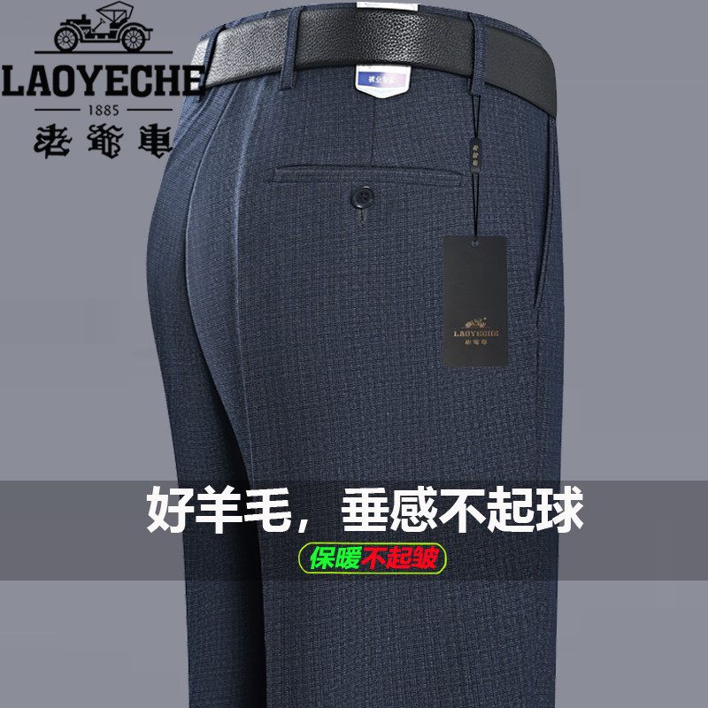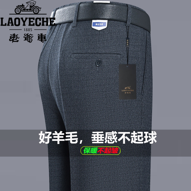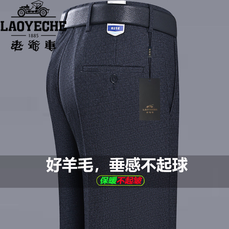老爷车秋冬新款羊毛西裤男加厚直筒商务休闲抗皱免烫中年西装裤子