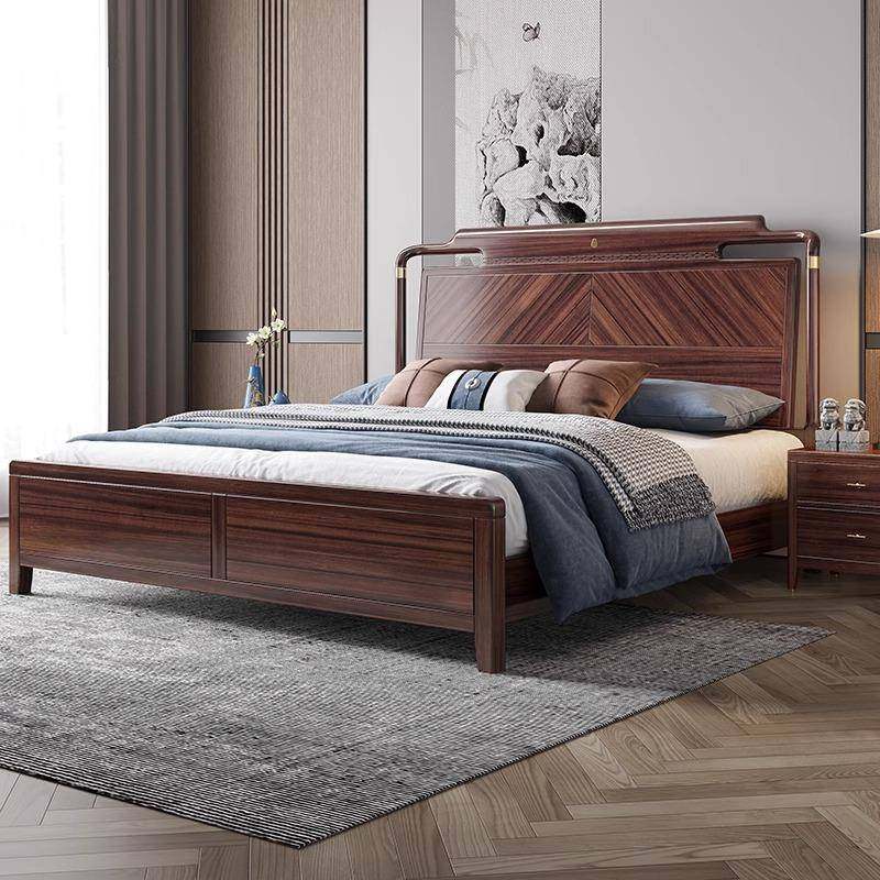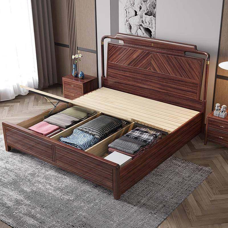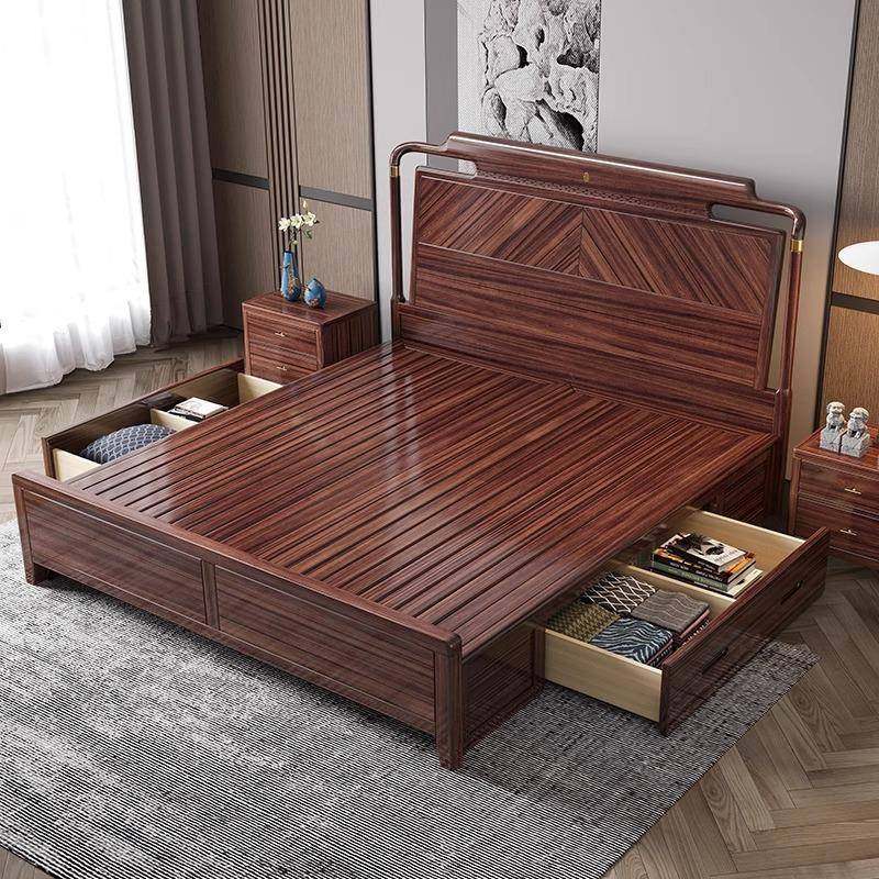 新中式乌金木全实木床卧室家具1.8米双人床主卧婚床高箱储物大床