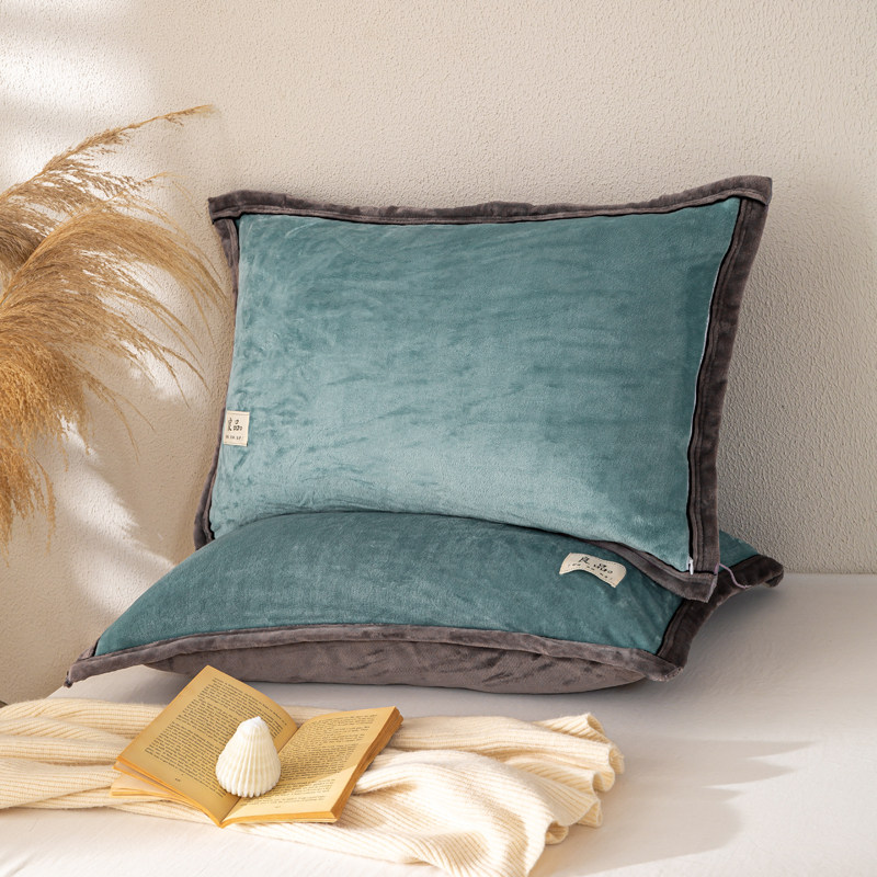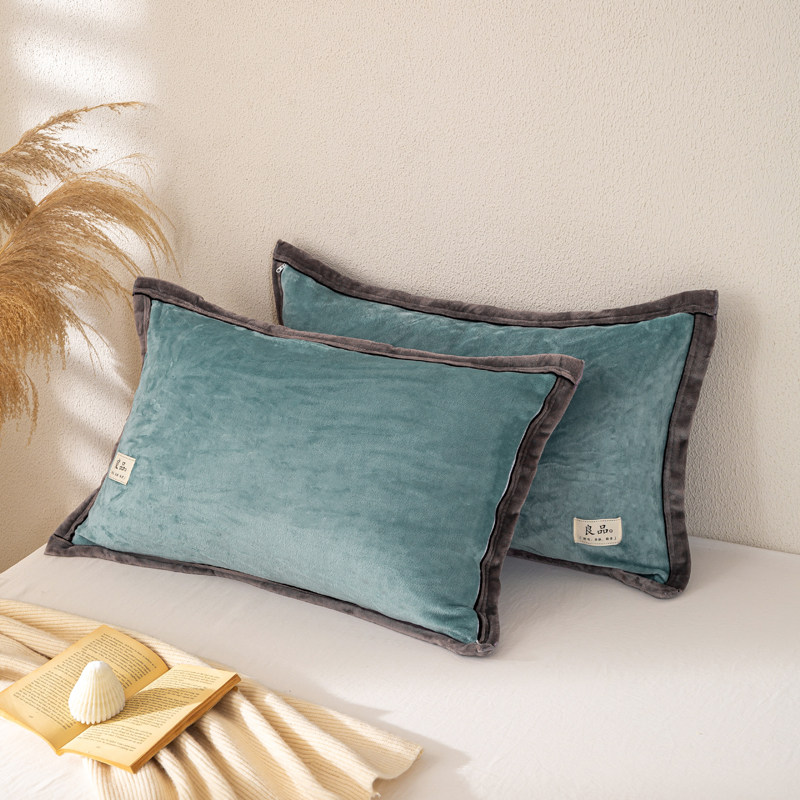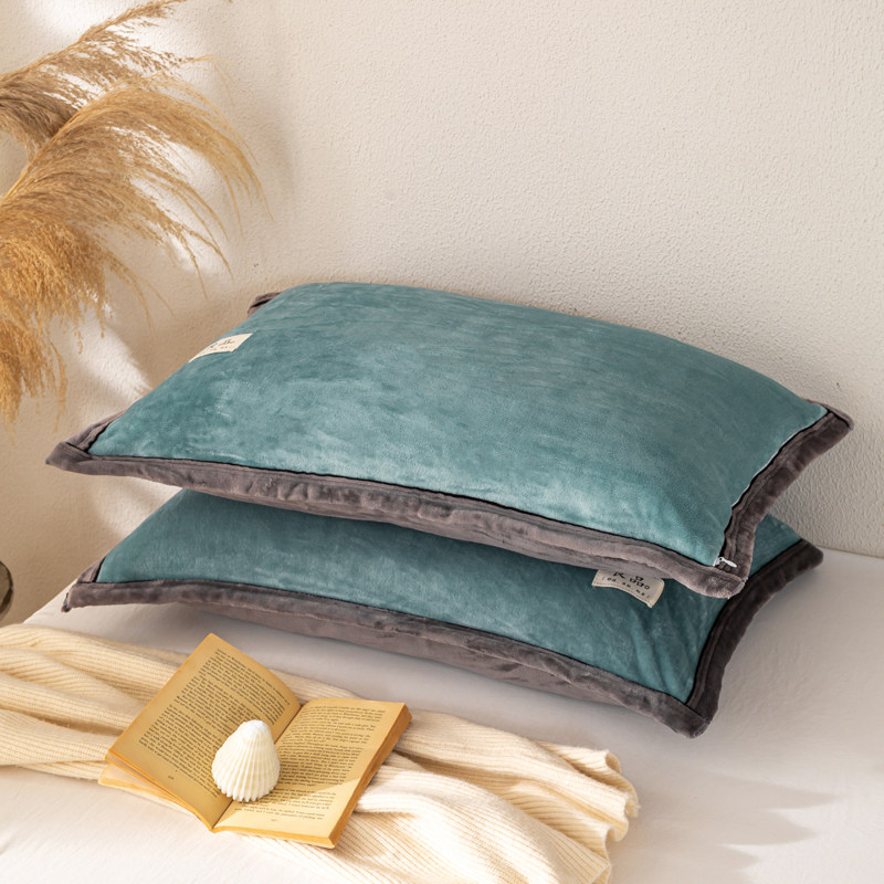 牛奶绒珊瑚绒枕套一对装48x74cm秋冬季加绒枕头套单人枕芯内胆套2