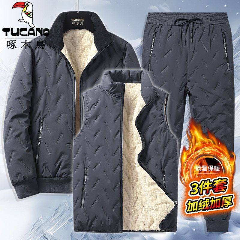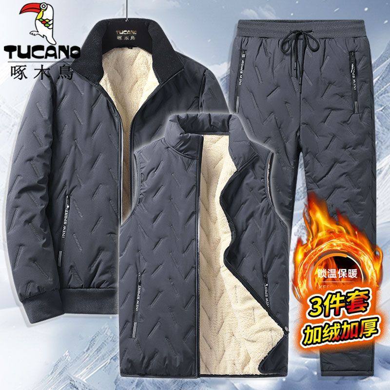 啄木鸟冬季加厚绒棉衣棉裤2/3件套羊羔绒棉服正宗劳保棉袄套装男
