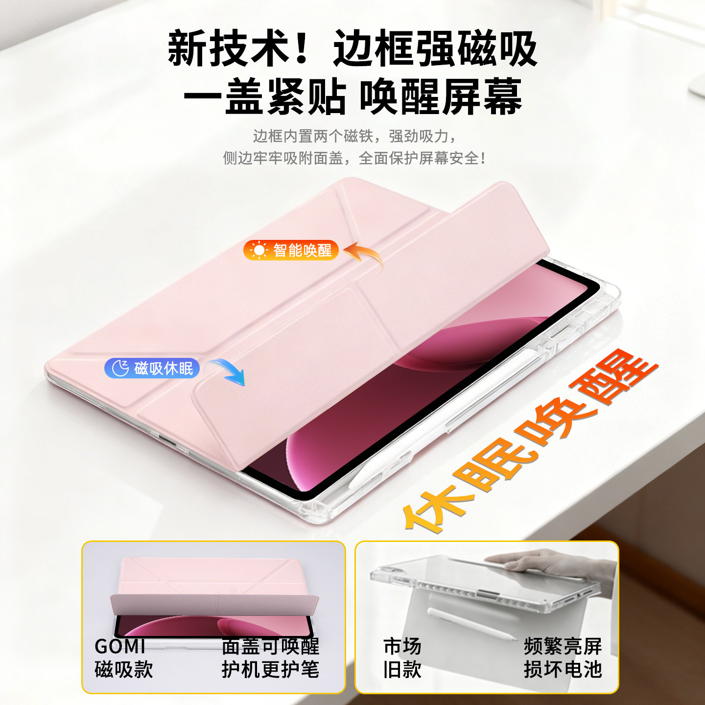 gomi适用oppopad4pro保护套一加平板2Pro保护壳13.2英寸2025新款pad5带笔槽电脑pad3+Y型透明亚克力全包防弯