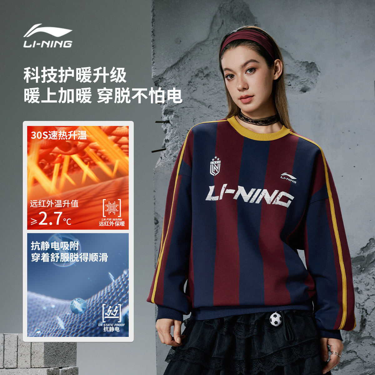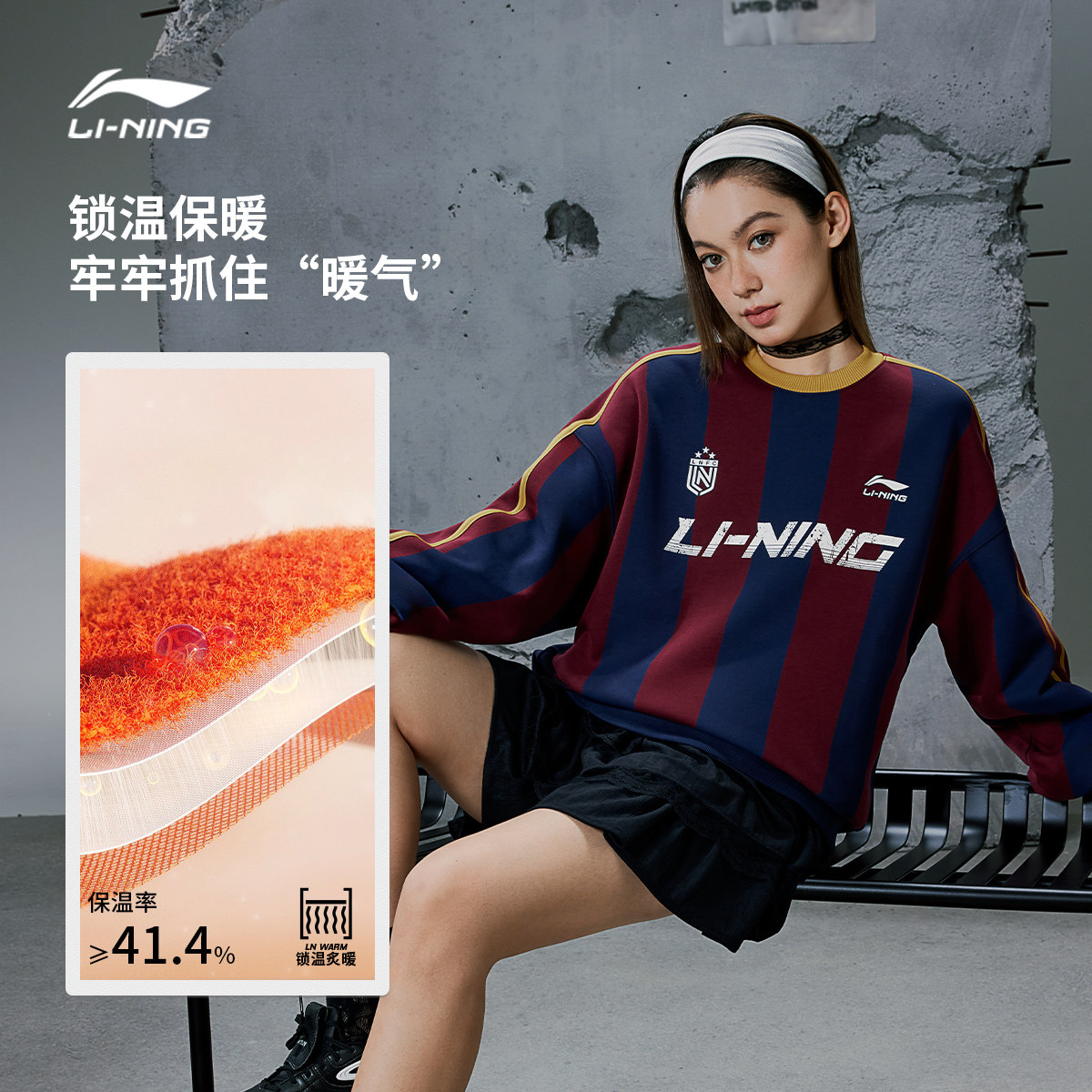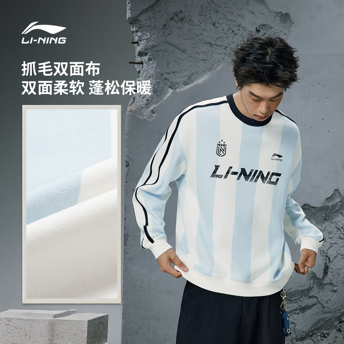 李宁美式卫衣女春季新款情侣装长袖保暖百搭足球上衣男宽松运动服