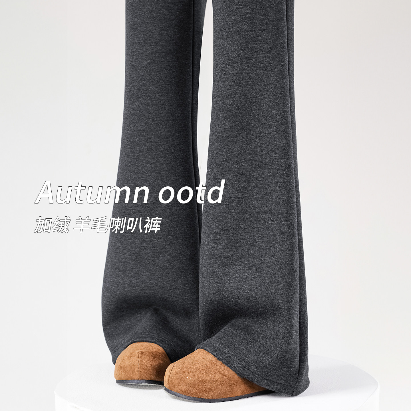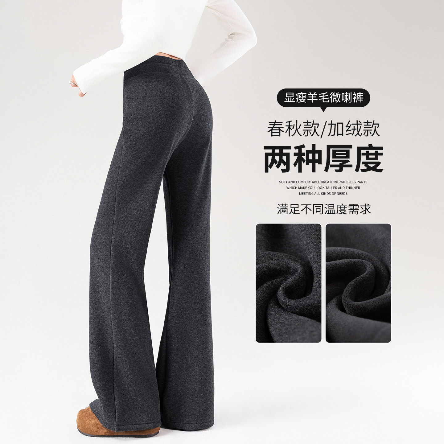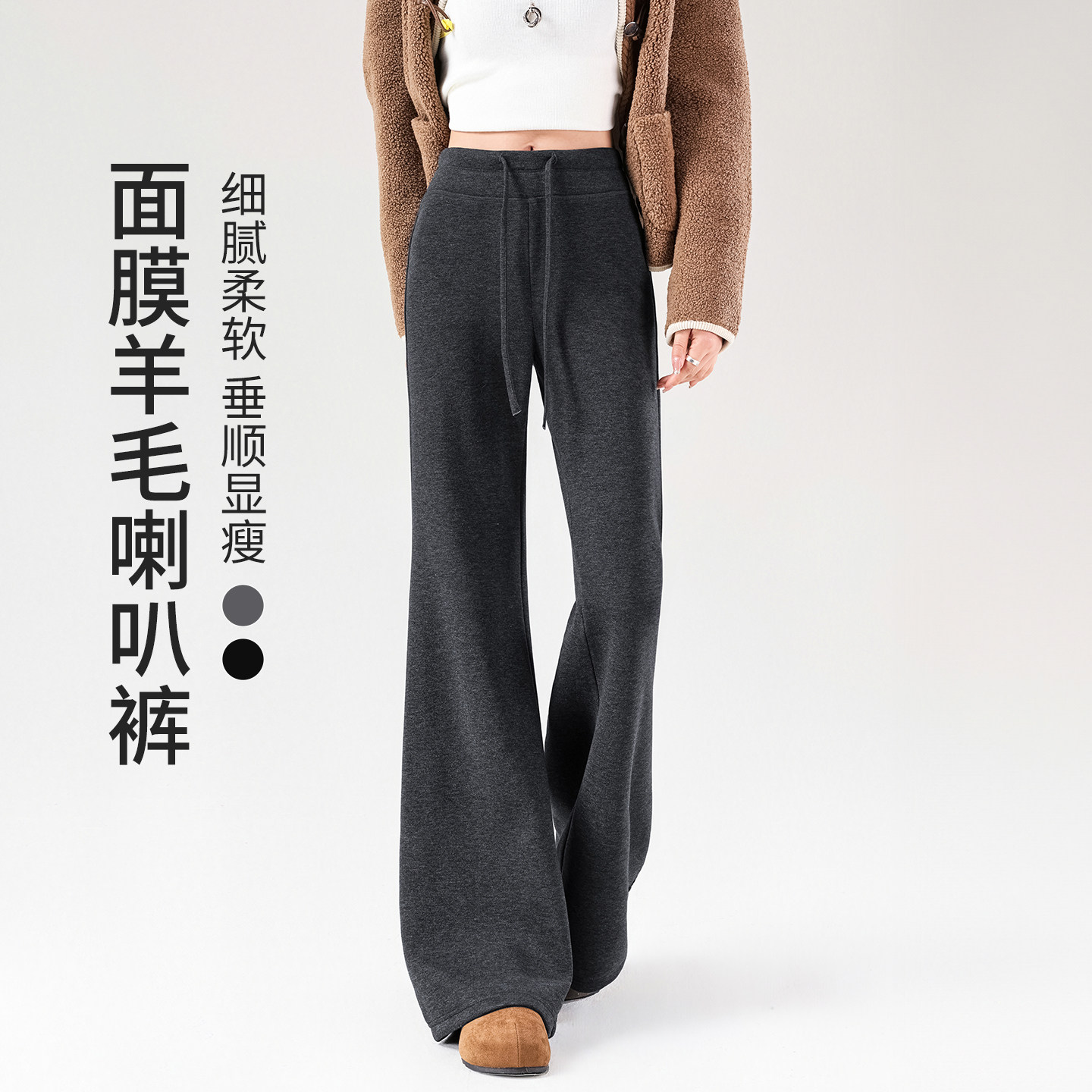2025秋冬新款羊毛加绒加厚微喇裤女高腰垂感直筒显瘦显腿长喇叭裤