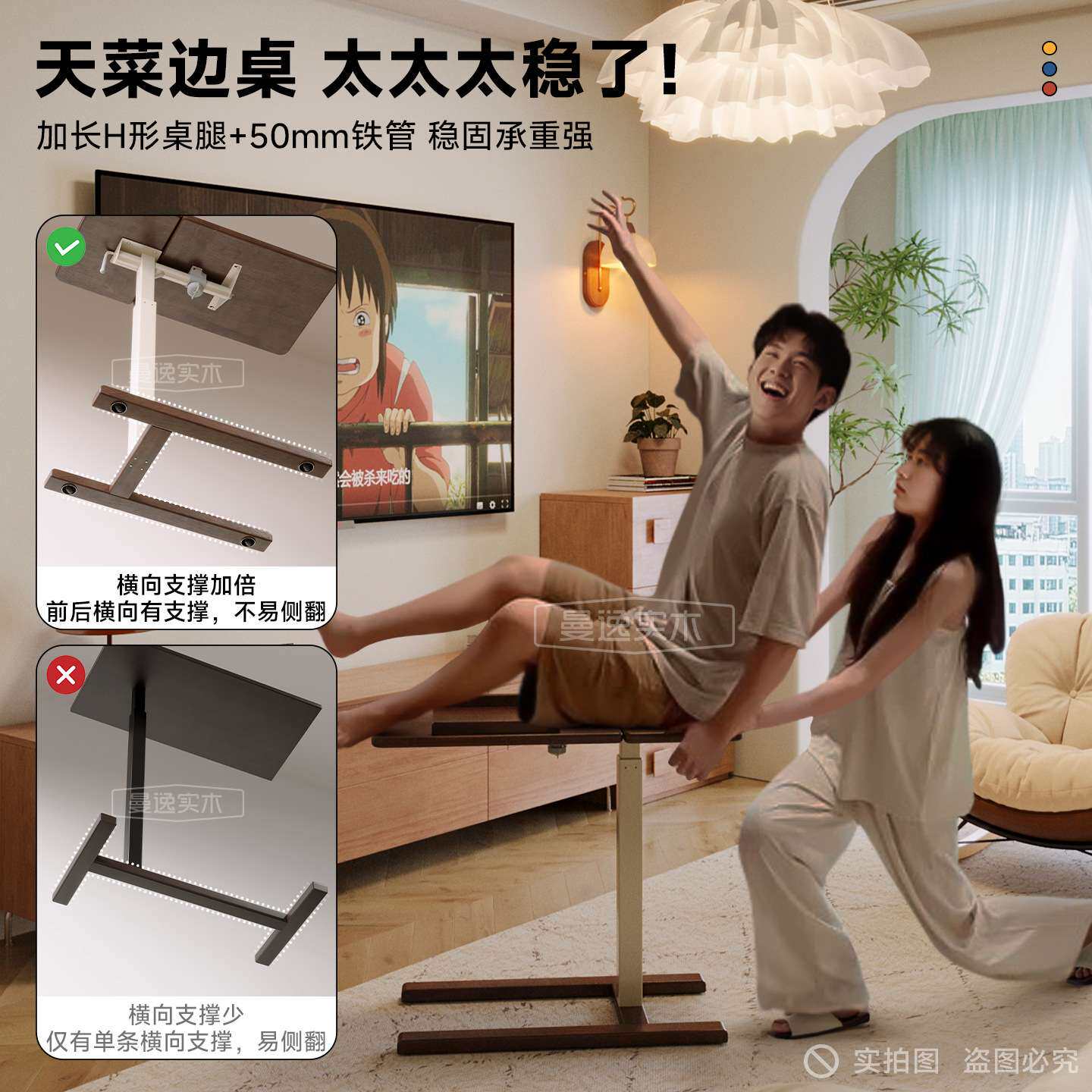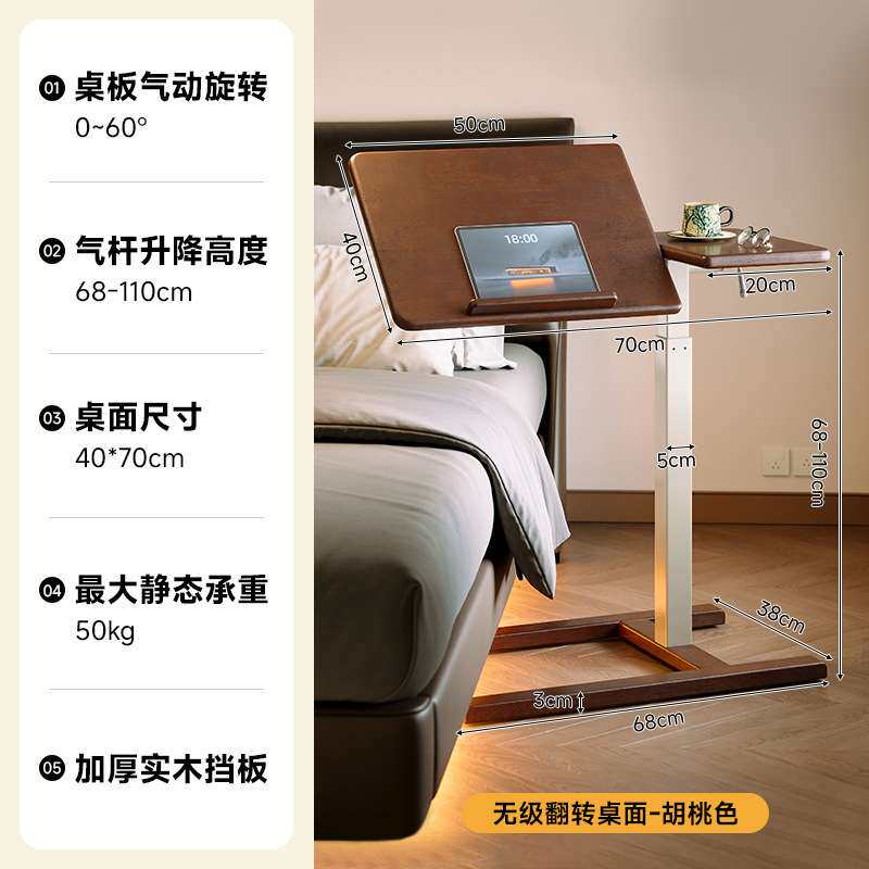 实木可移动床边桌家用升降电脑桌书桌卧室床边带轮小桌子沙发边几