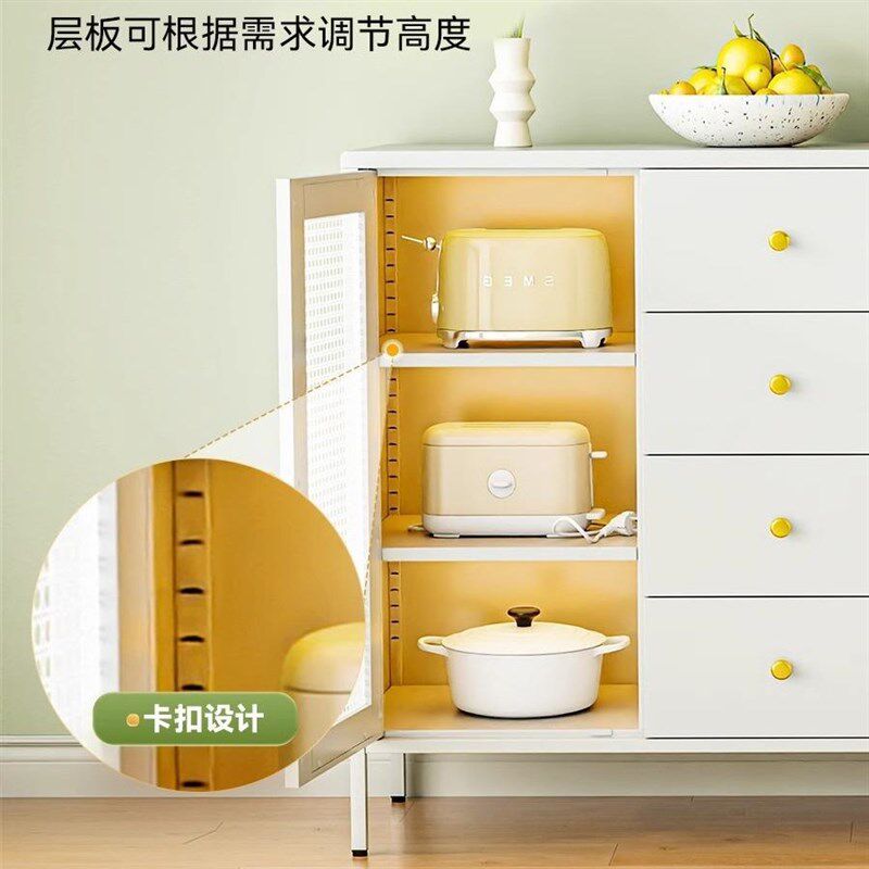 奶油风藤编餐边柜家用厨房收纳柜客厅边柜储物柜置物柜钢制橱柜
