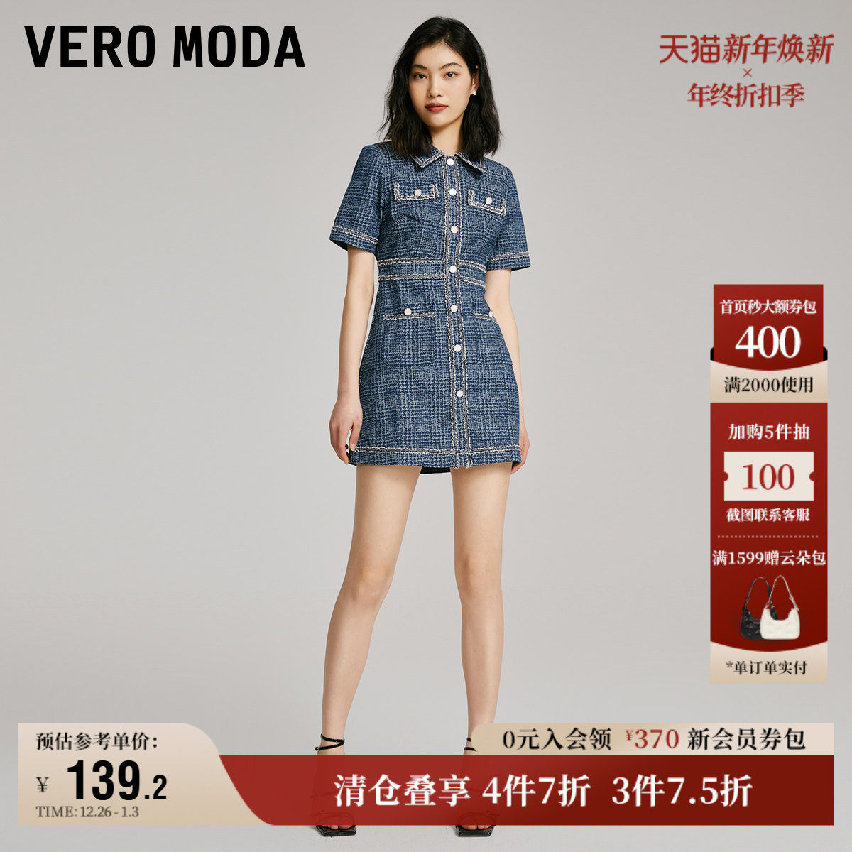 Vero Moda奥莱连衣裙子秋冬清仓优雅通勤小香风短袖牛仔短裙女