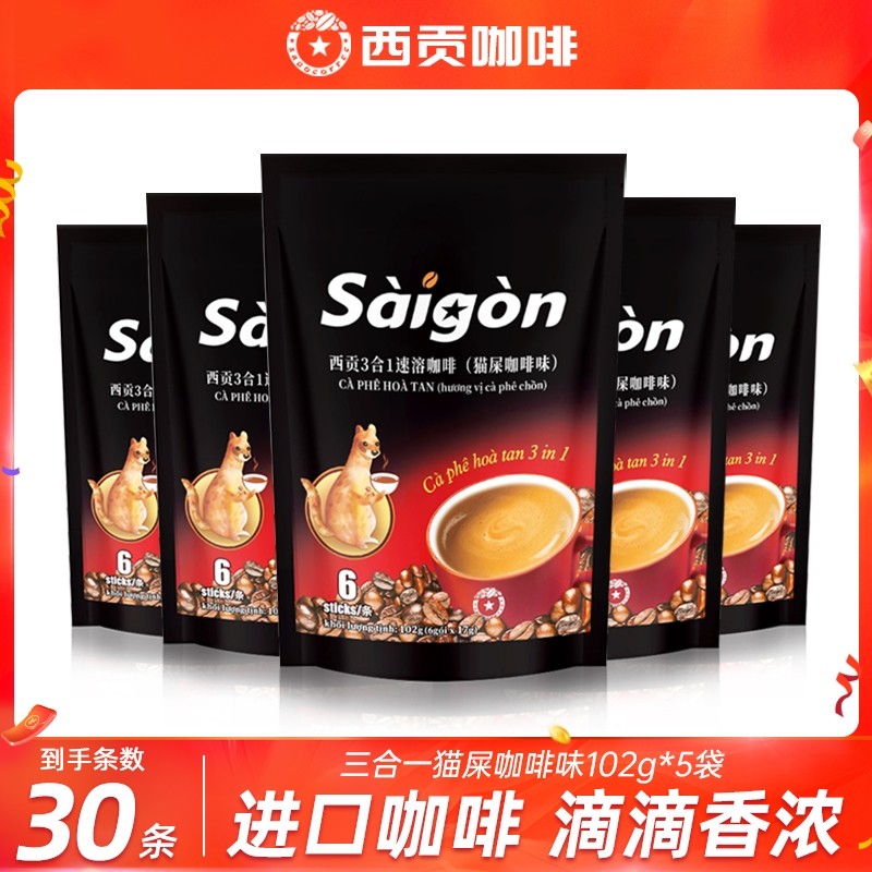 越南咖啡西贡速溶猫屎咖啡味进口三合一咖啡袋装饮品防困提神