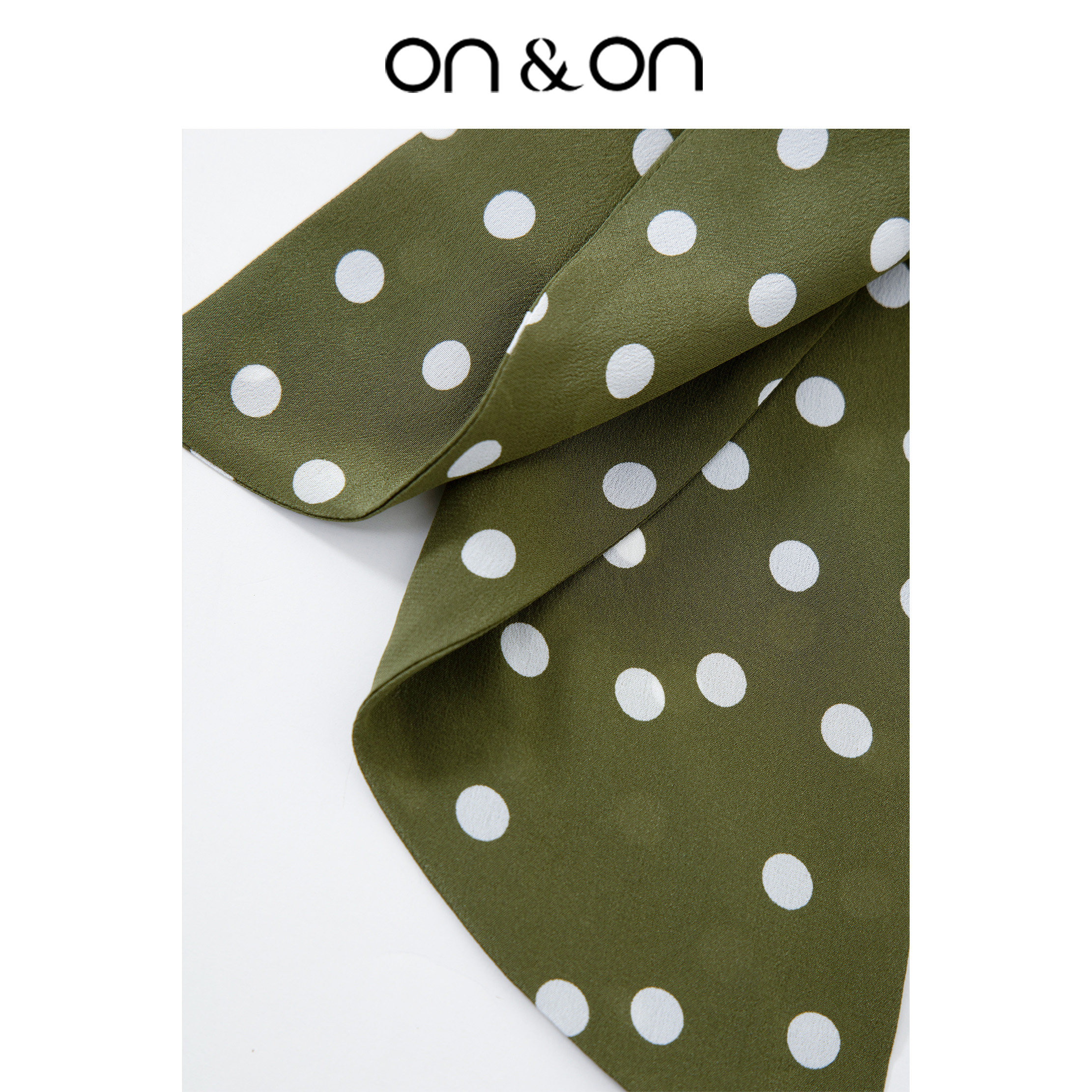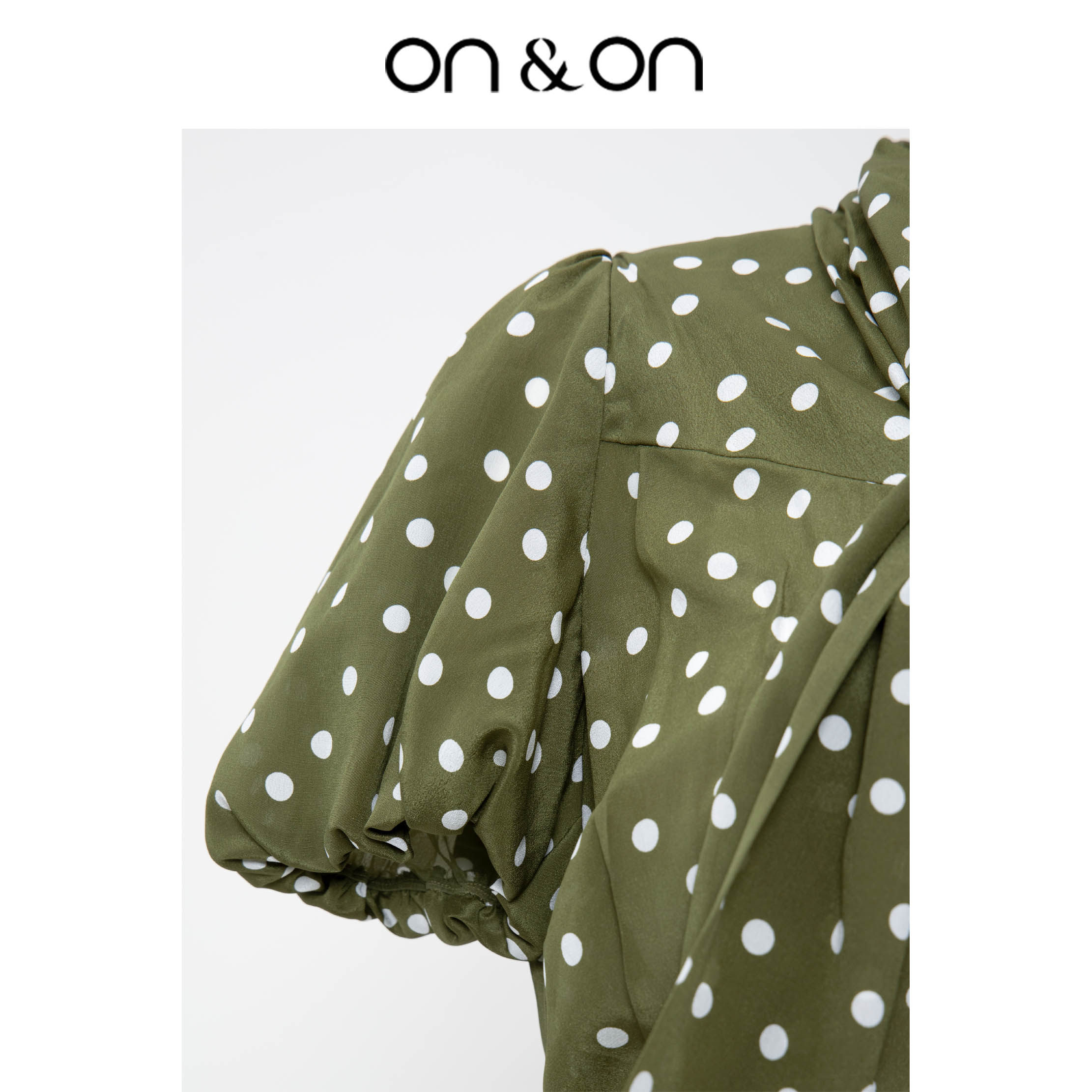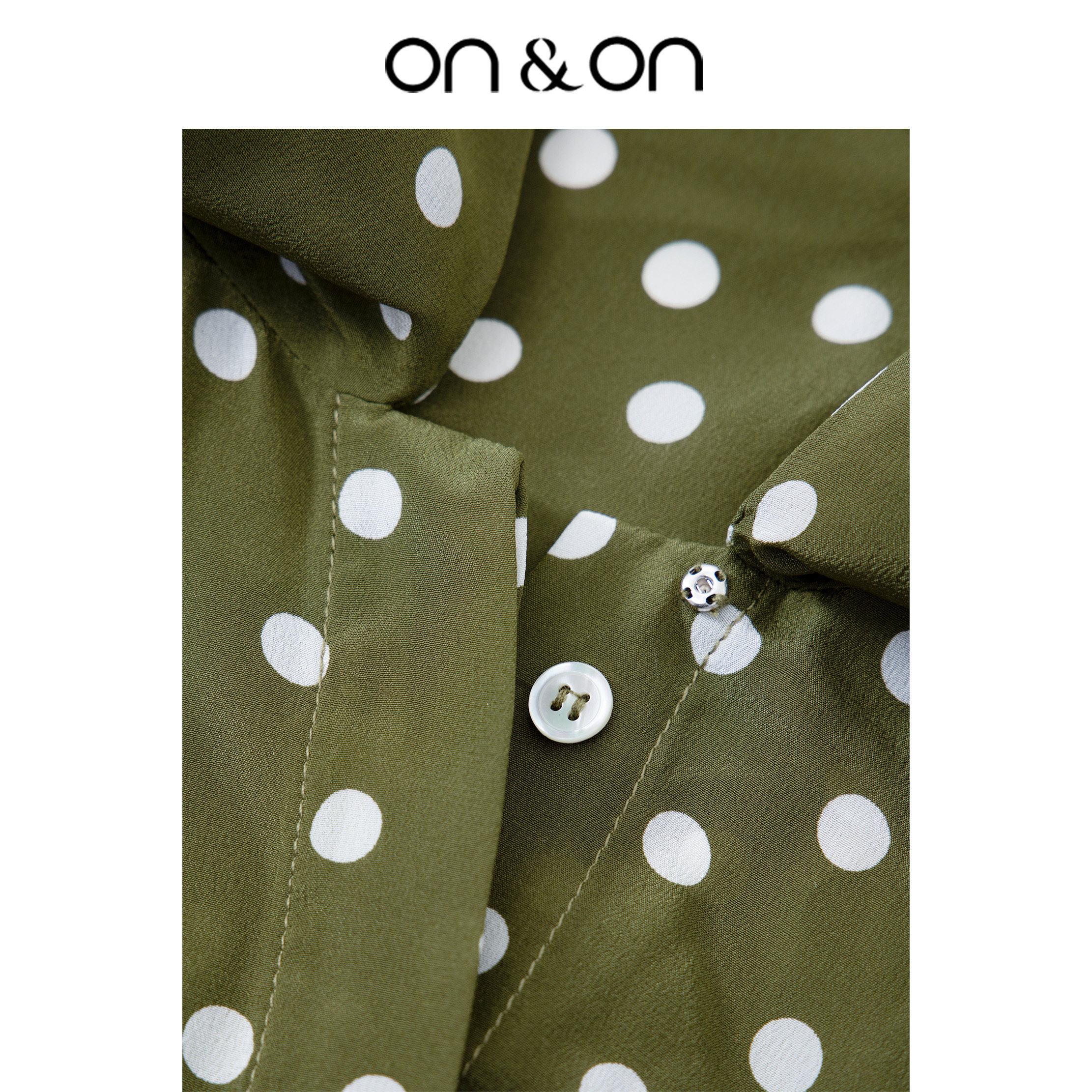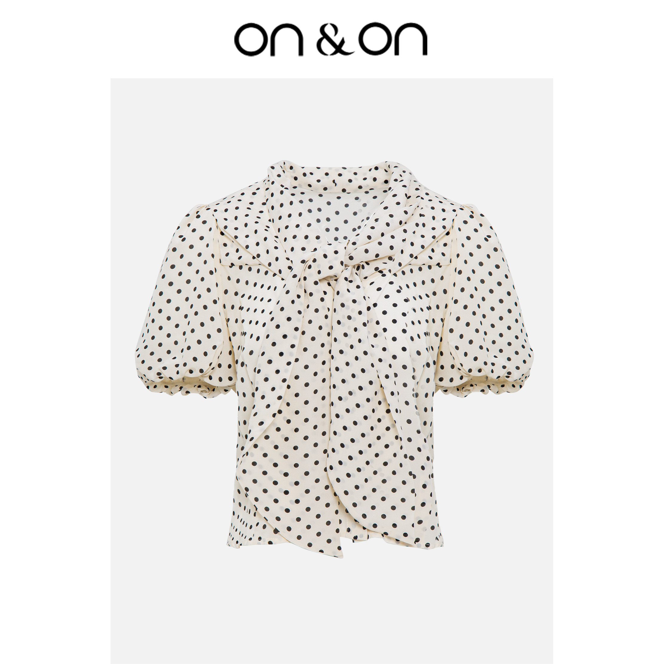 ON&ON/安乃安2025夏季复古波点V领收腰系带桑蚕丝短袖小衫上衣女