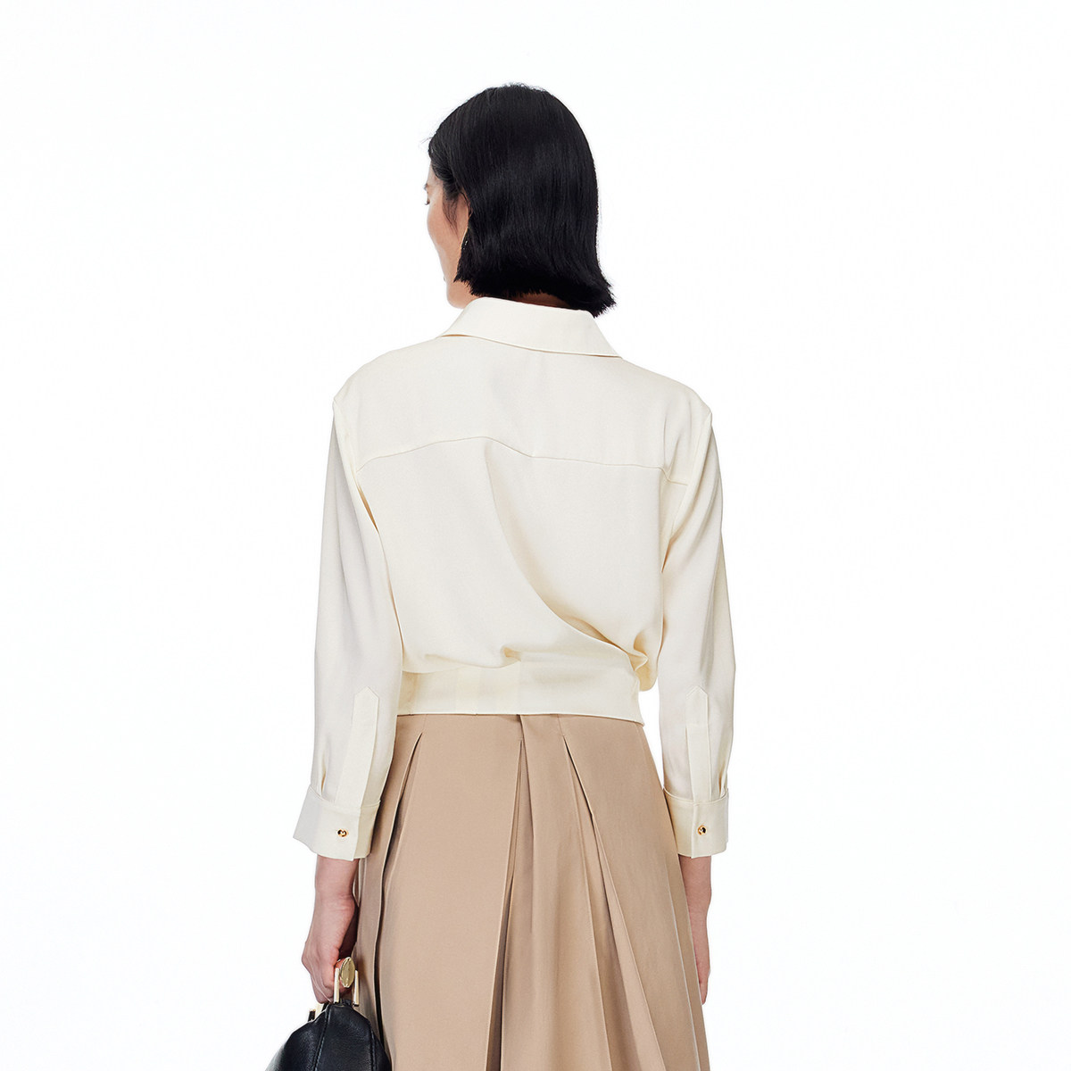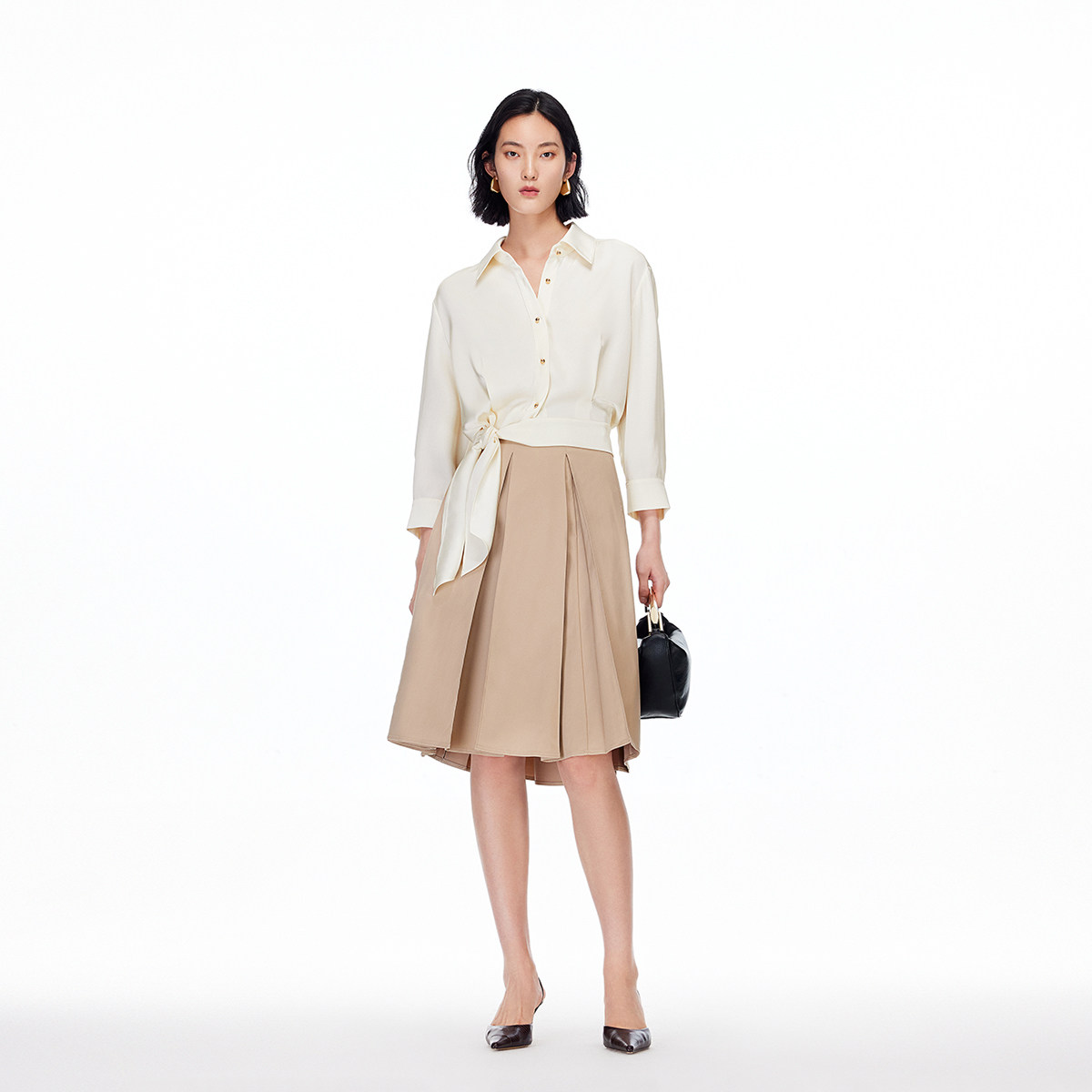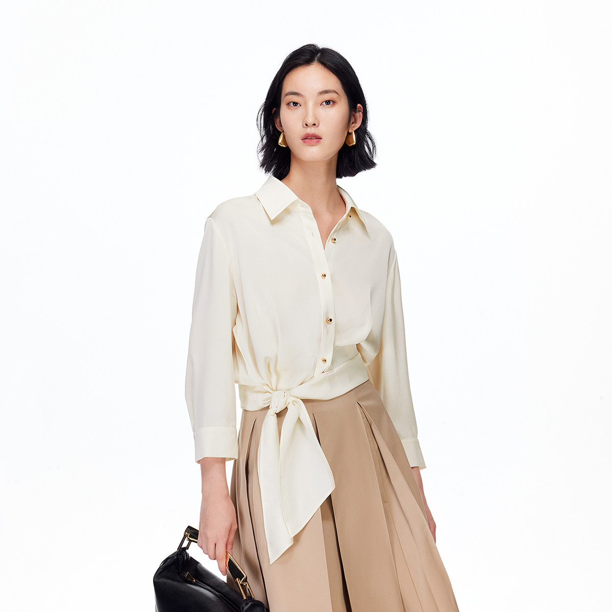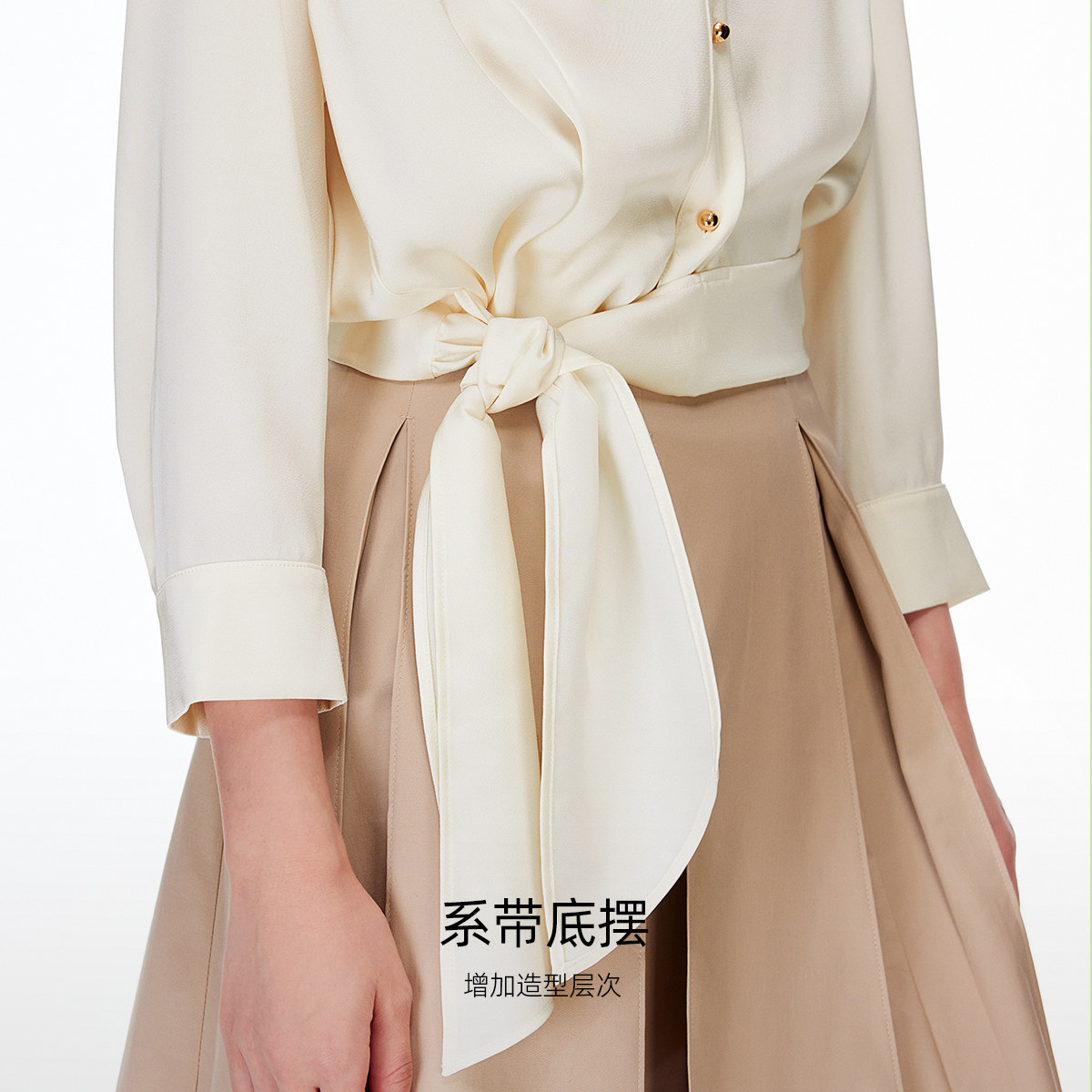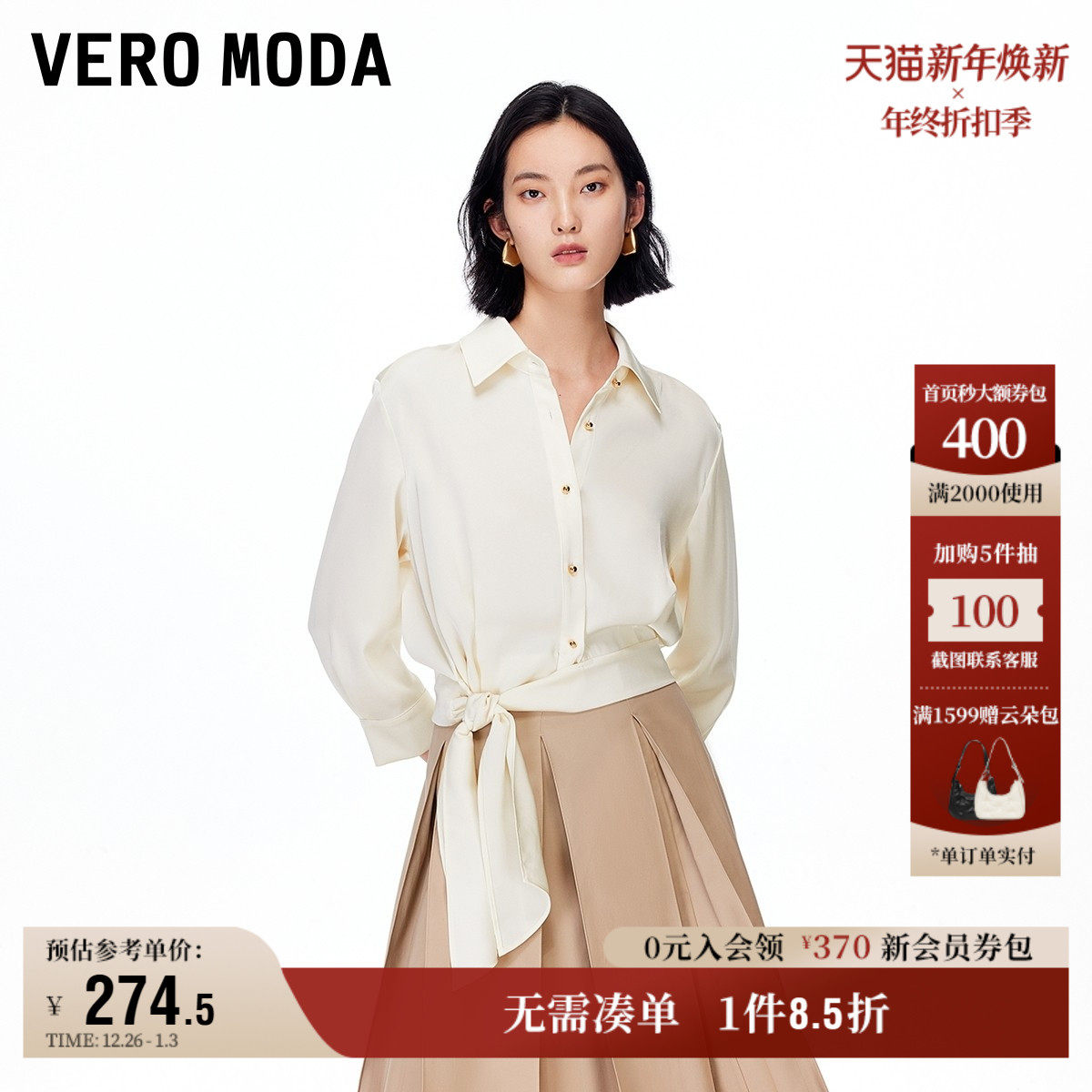 Vero Moda奥莱衬衫女2025秋冬新款尖领底摆系带垂感七分袖上衣