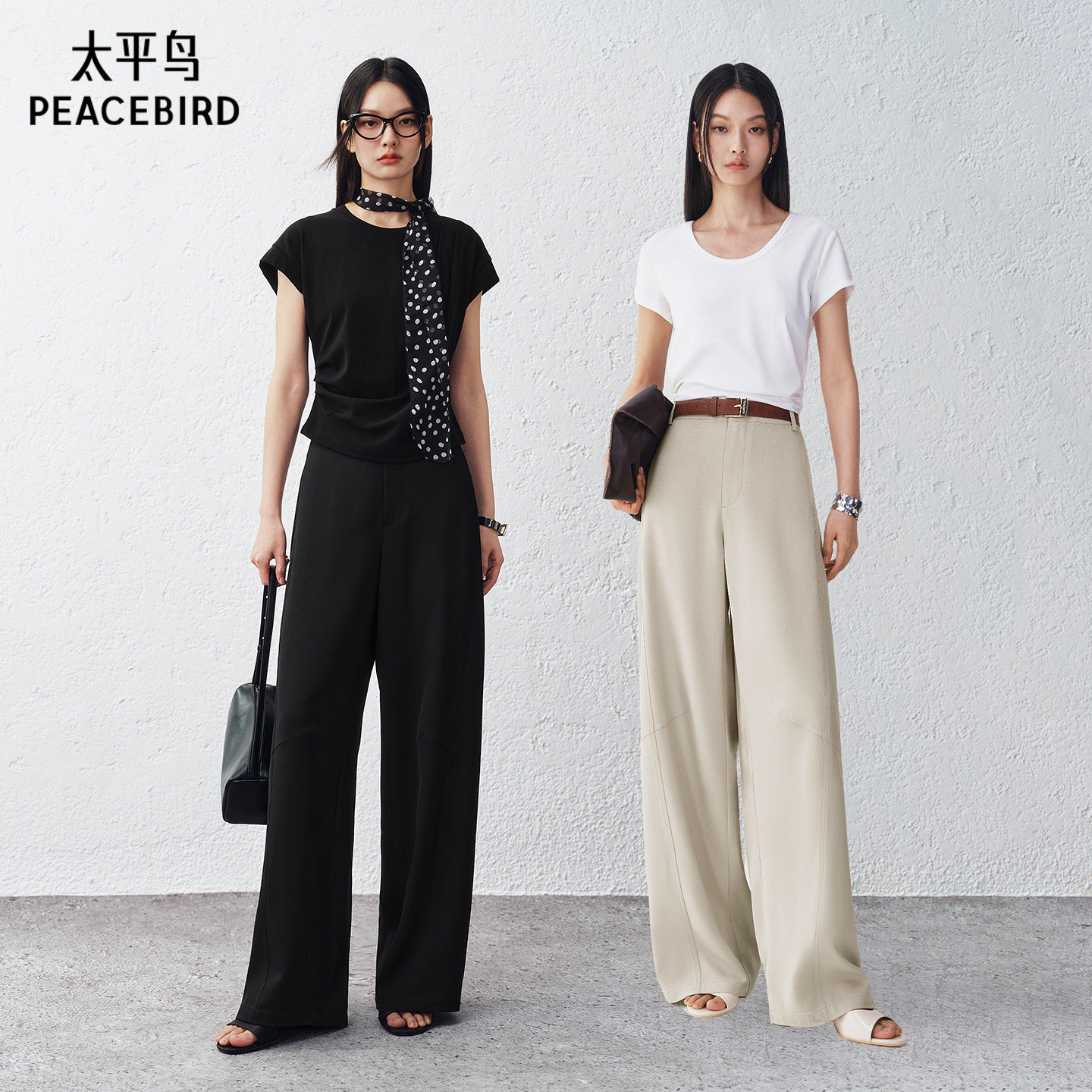 梨妹裤太平鸟高腰阔腿香蕉裤26夏新款宽松显瘦小弯刀休闲西装裤女