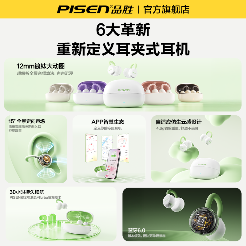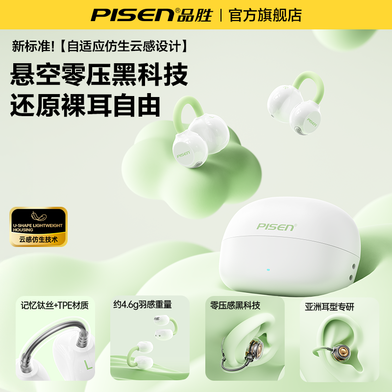 品胜CliP云羽耳夹式蓝牙耳机2025新款无线挂耳气骨传导运动不入耳