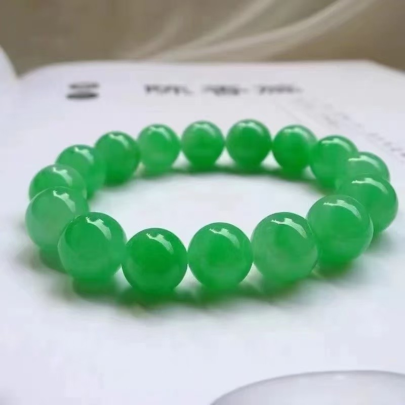 高端款仿缅甸冰糯种帝王绿翡翠色手串男女款百搭时尚饰精挑佛珠
