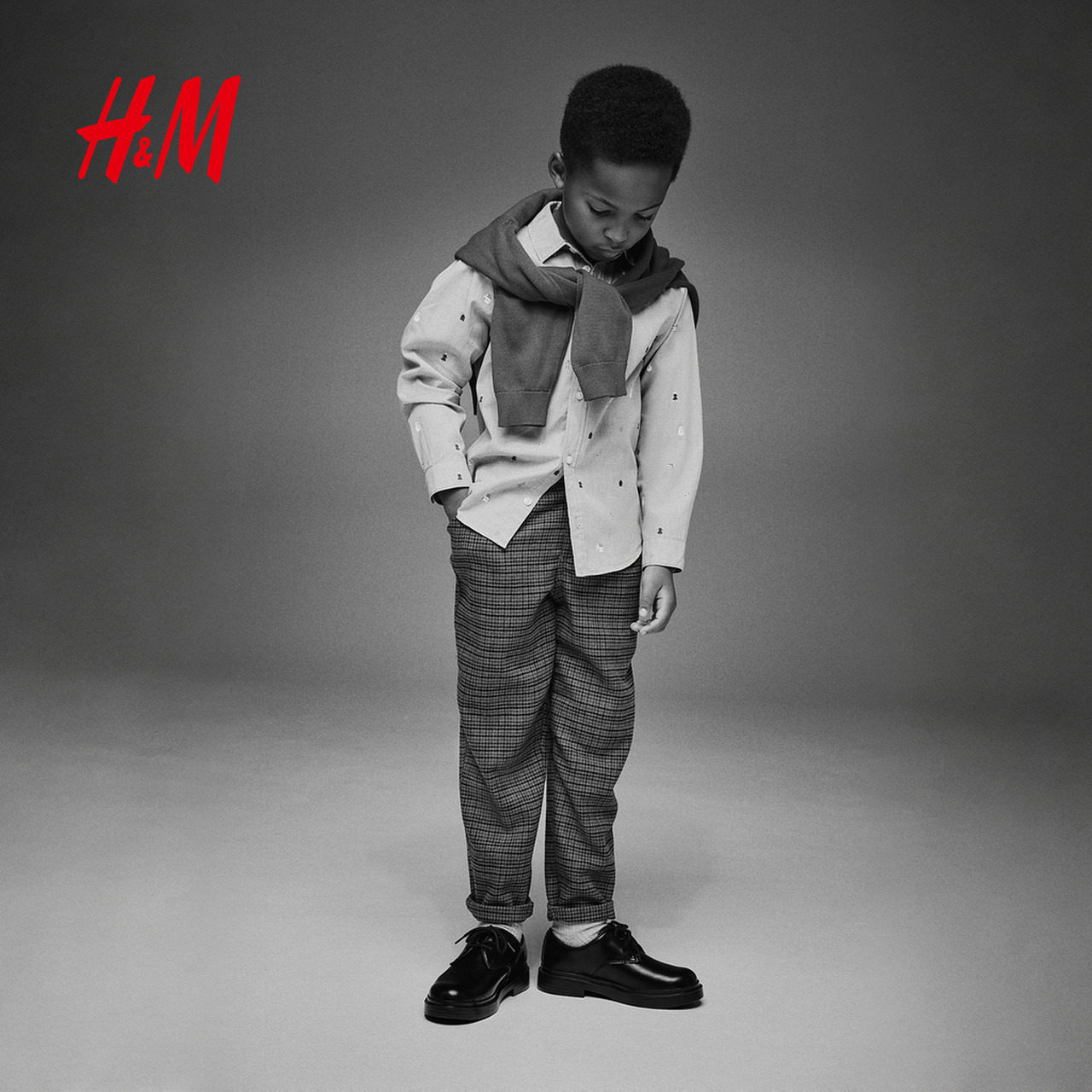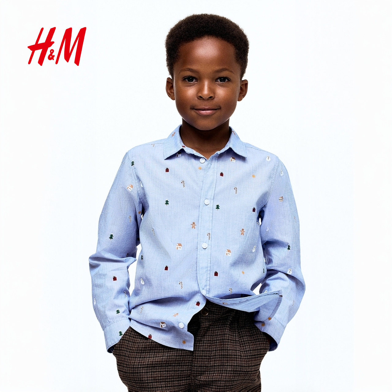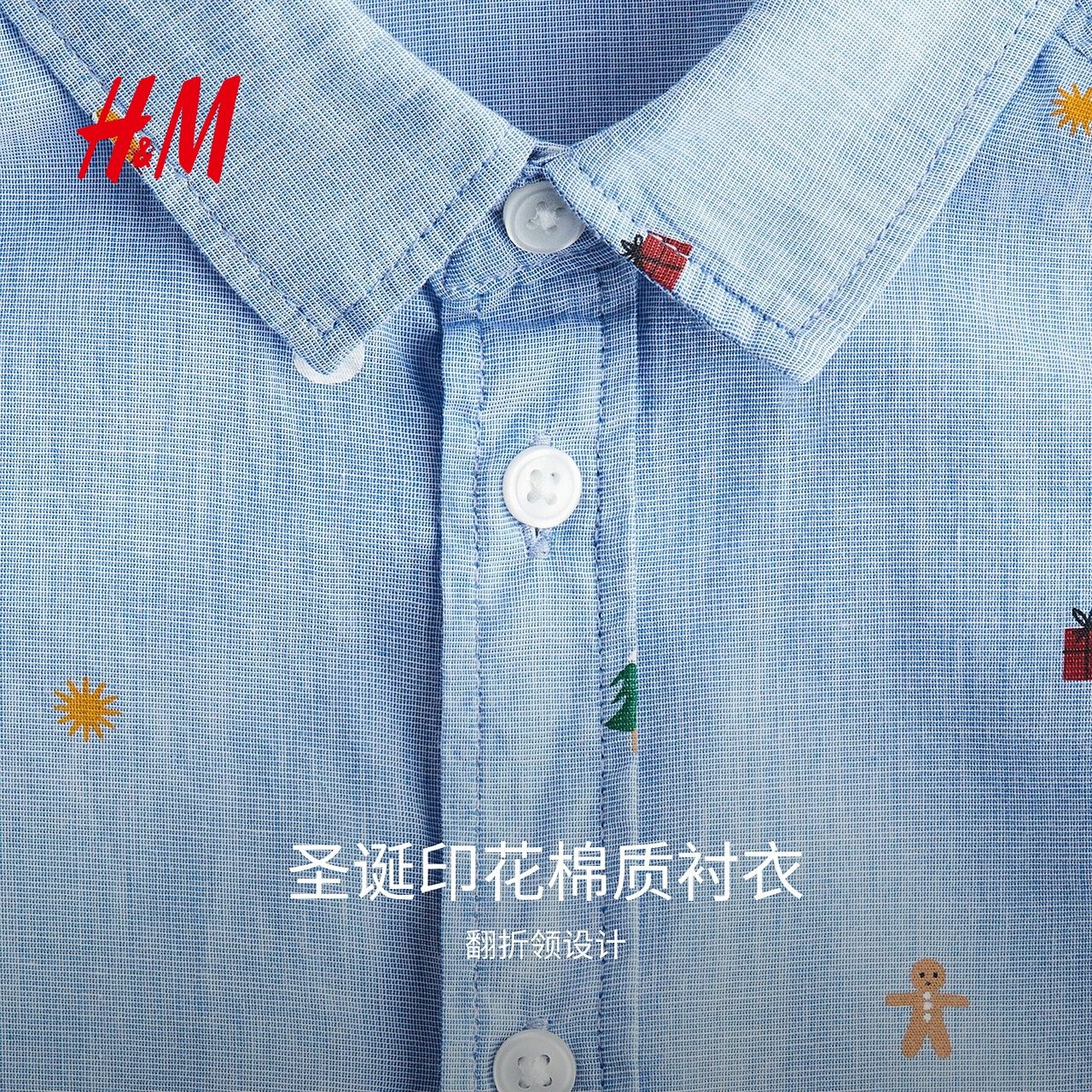 HM童装儿童男童衬衫2025冬季新款新年印花棉质内搭衬衣1301973