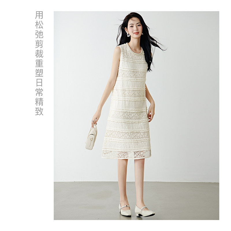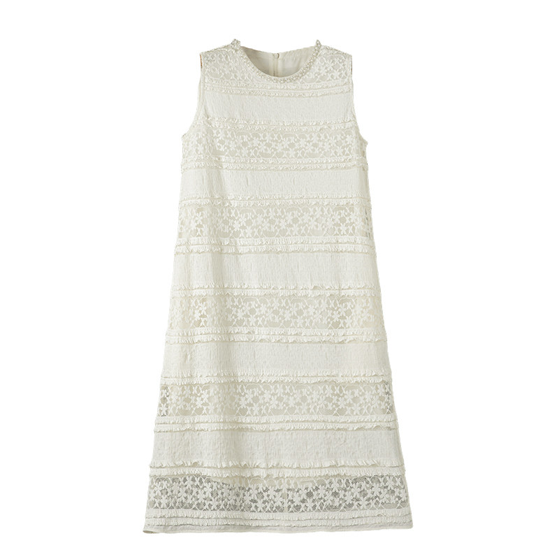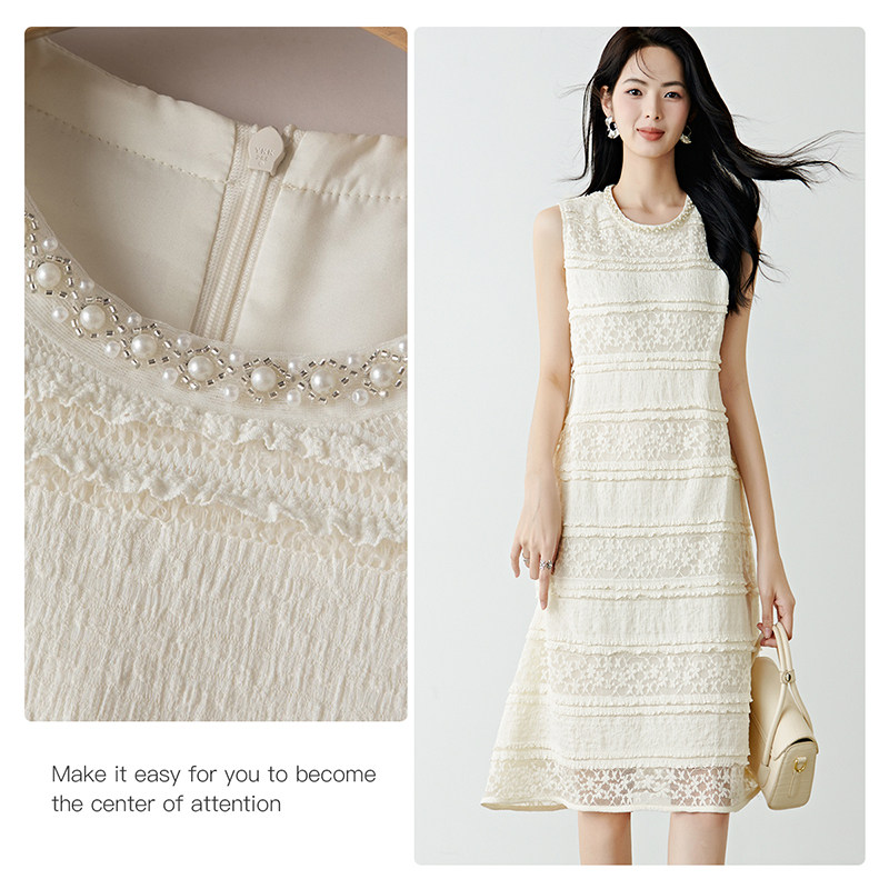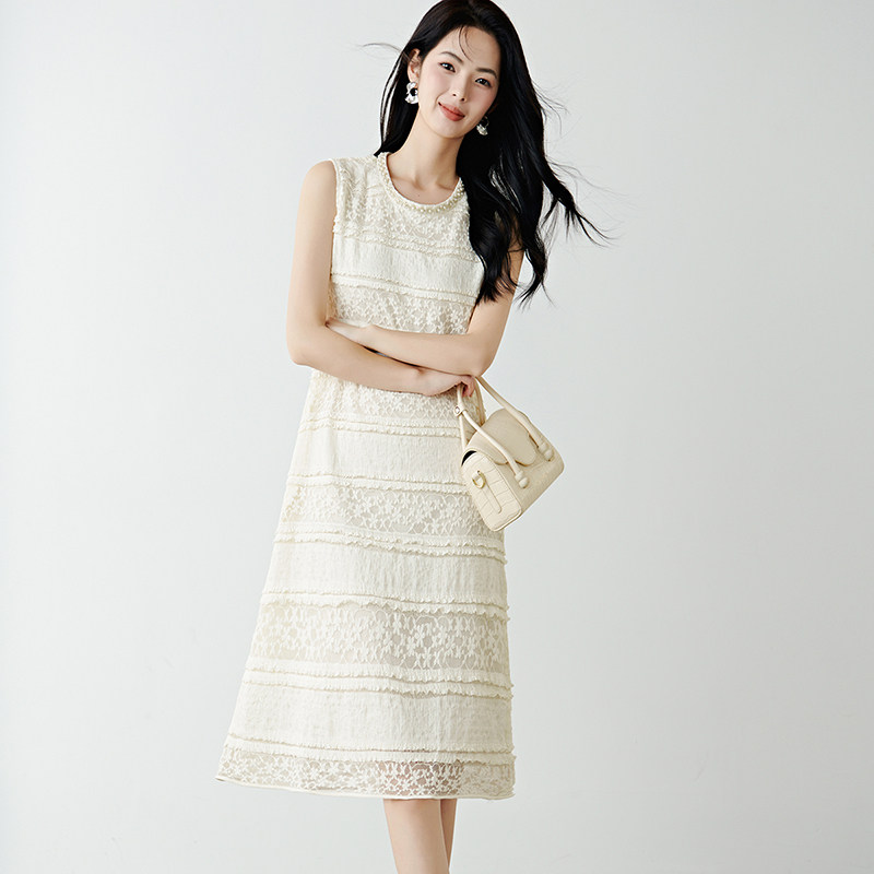 晚白2026年春新款优雅千金风公主蕾丝裙子时尚钉珠气质无袖连衣裙