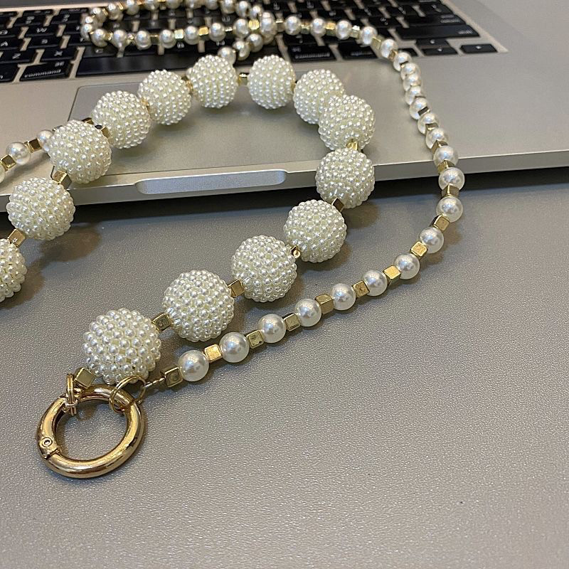 少女心仙女风珍珠手提链手机壳斜跨链通用百搭高档包包链条挂肩