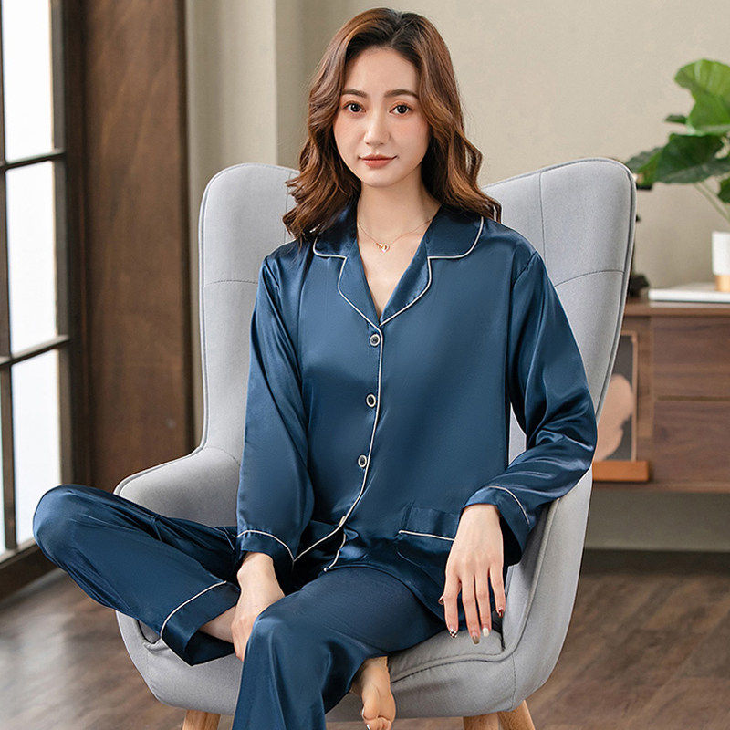 恒源祥空调房睡衣女真丝绸长袖中老年妈妈薄款夏季冰丝春秋家居服
