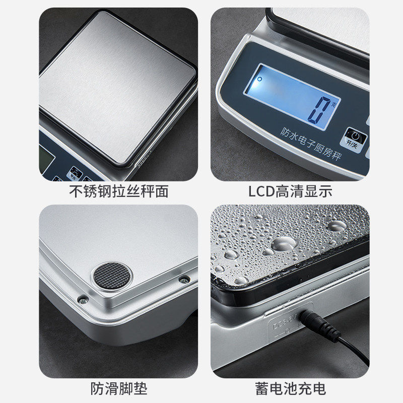 防水高精度电子秤家用食物称重烘焙厨房专用克秤托盘充电计数便携