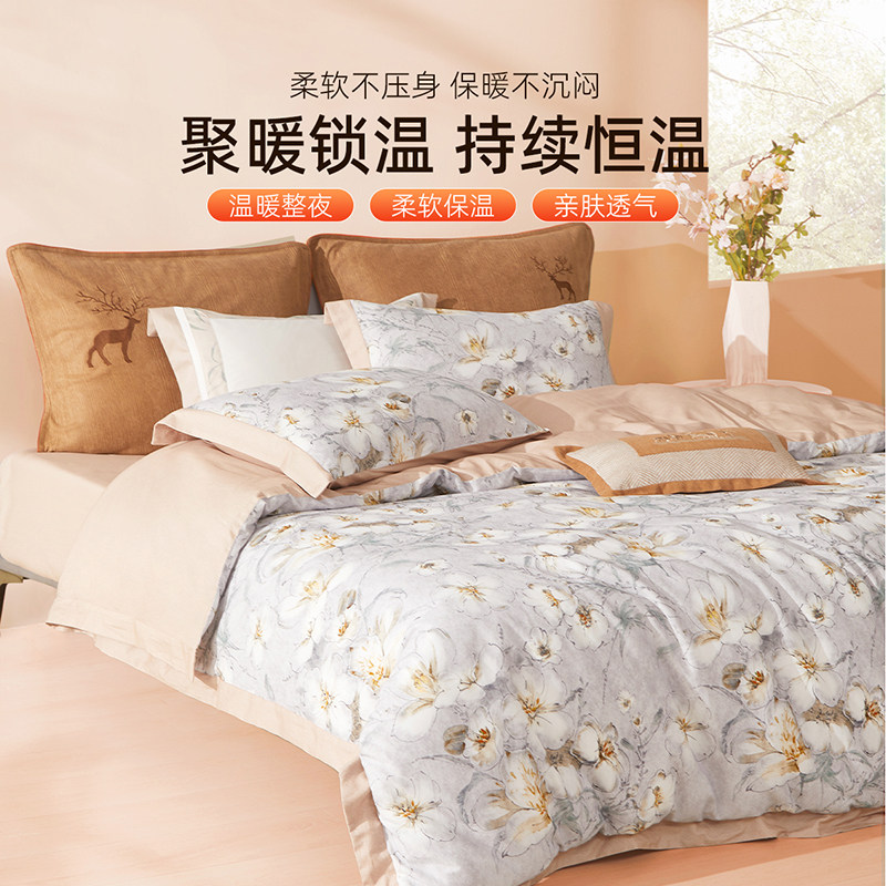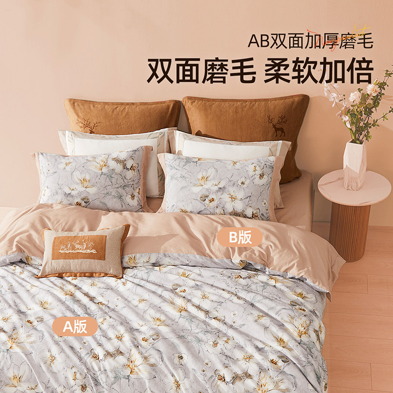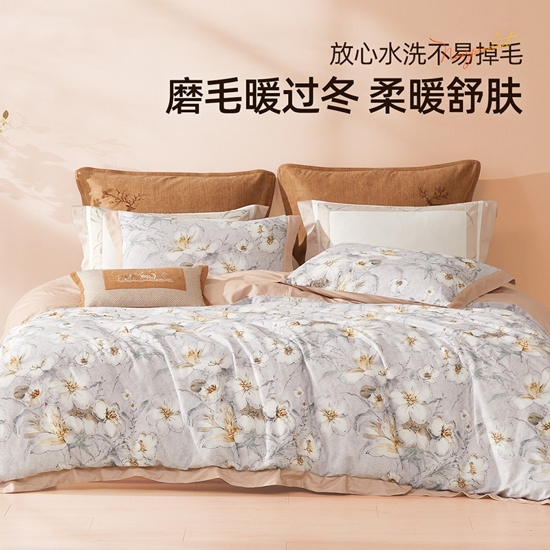 梦洁家纺床上四件套纯棉全棉蓄热保暖秋冬磨毛被套三件套床上用品