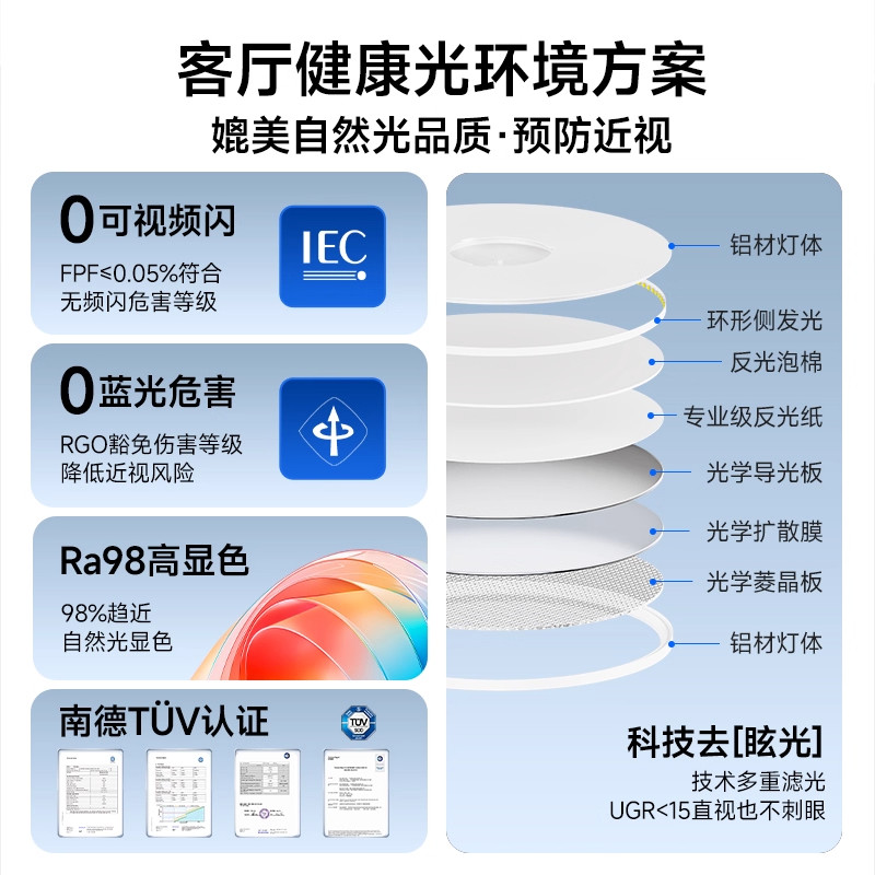 长虹「启蒙光」卧室吸顶灯极简超薄悬浮全光谱护眼书房间灯具套餐