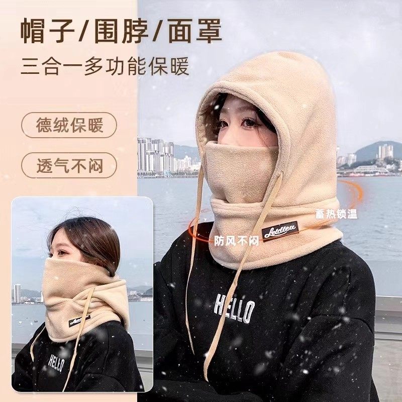 围巾帽子手套一体女连帽冬季帽可爱保暖围脖毛绒冬天三件套厚防寒